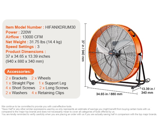 - Tehokas ilmavirta: Airflow: 8700 CFM nopeaan ilmanvaihtoon suurissakin tiloissa.
