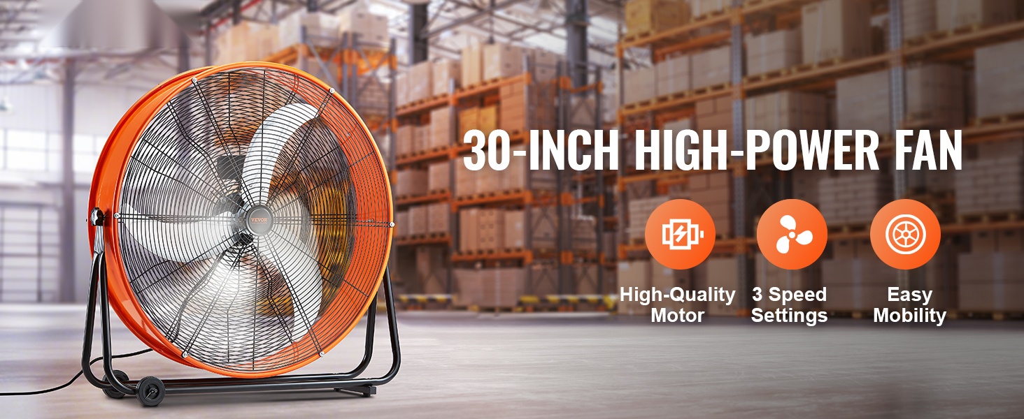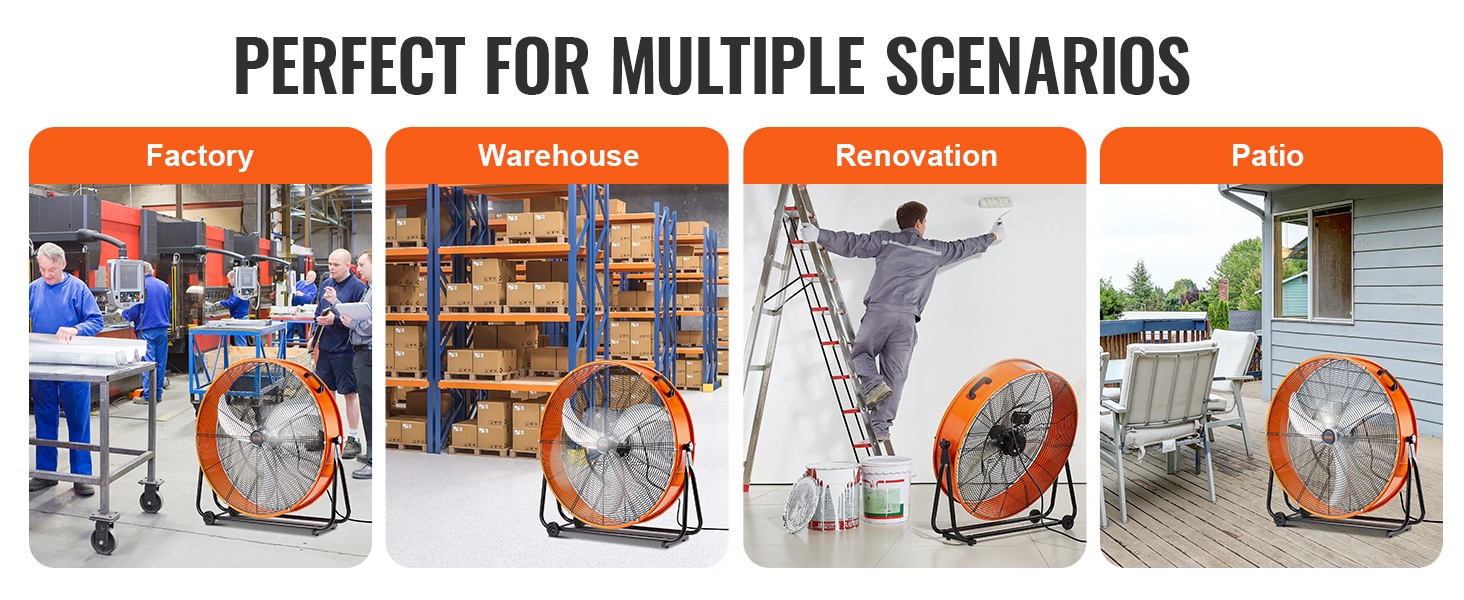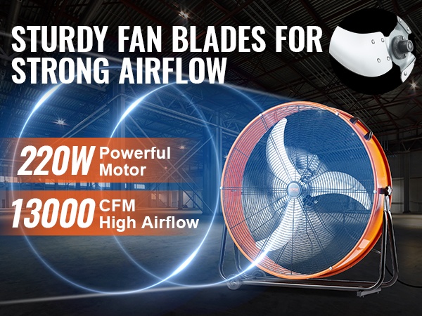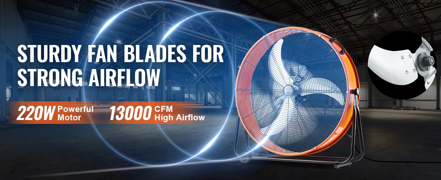 Tämä 24-tuumainen teollisuuspuhallin tarjoaa voimakkaan ilmavirran tehokkaaseen tuuletukseen varastoissa, työpajoissa, tehtaissa ja kellaritiloissa. Korkealaatuinen moottori ja erikoismuotoillut alumiinilavat takaavat tasaisen ja miellyttävän ilmanvaihdon koko työpäivän ajan.