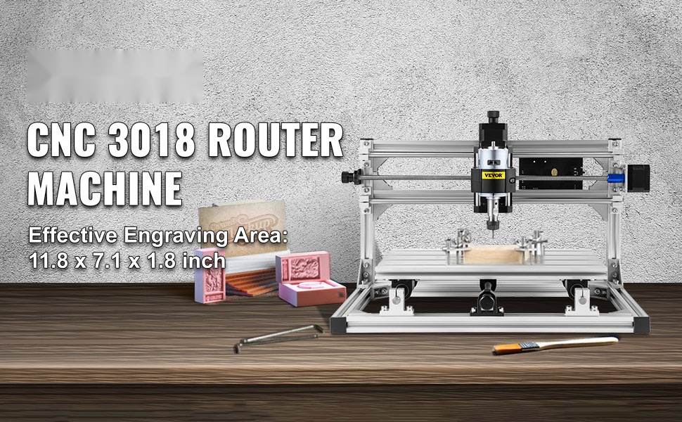 Kompakti 3-akselinen CNC 3018 -kaiverruskone, jonka tehokas työalue on 11.8(X) x 7.1(Y) x 1.8(Z) inch / 300 x 180 x 45 mm. Runko on valmistettu alumiiniseoksesta, ja ohjaus tapahtuu USB-liitännällä varustetun GRBL-ohjainkortin kautta. Laite soveltuu erilaisten muovien, pehmeän alumiinin, puun, PVC:n ja muiden pehmeiden materiaalien kaiverrukseen ja jyrsintään, ja se on hyvä valinta omatoimiseen oppimiseen ja pieniin projekteihin.