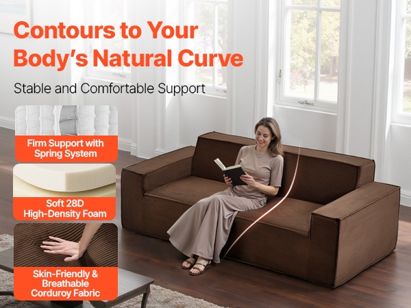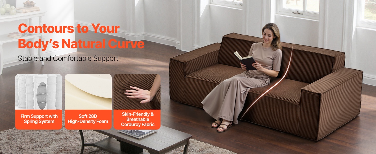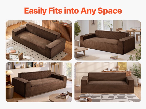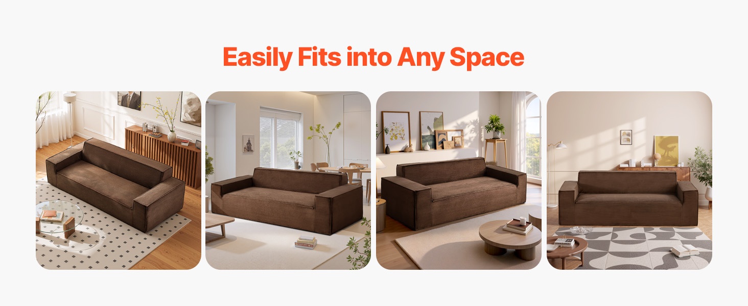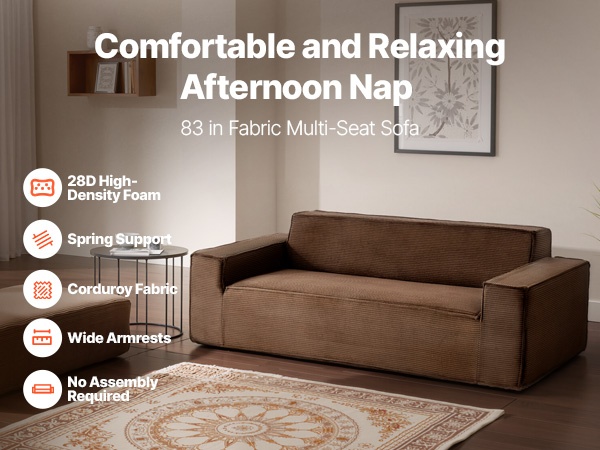 Tämä 100 in / 2540 mm 3-istuttava sohva yhdistää tukevan puurunkoisen rakenteen ja 28D-korkeatiheyksisen vaahtotäytteen, mikä takaa hyvän kestävyyden ja miellyttävän tuen. Jokaisen istuimen alla on tilava säilytystila, joka sopii esimerkiksi vilteille, tyynyille, kirjoille ja leluille ja auttaa pitämään olohuoneen siistinä.