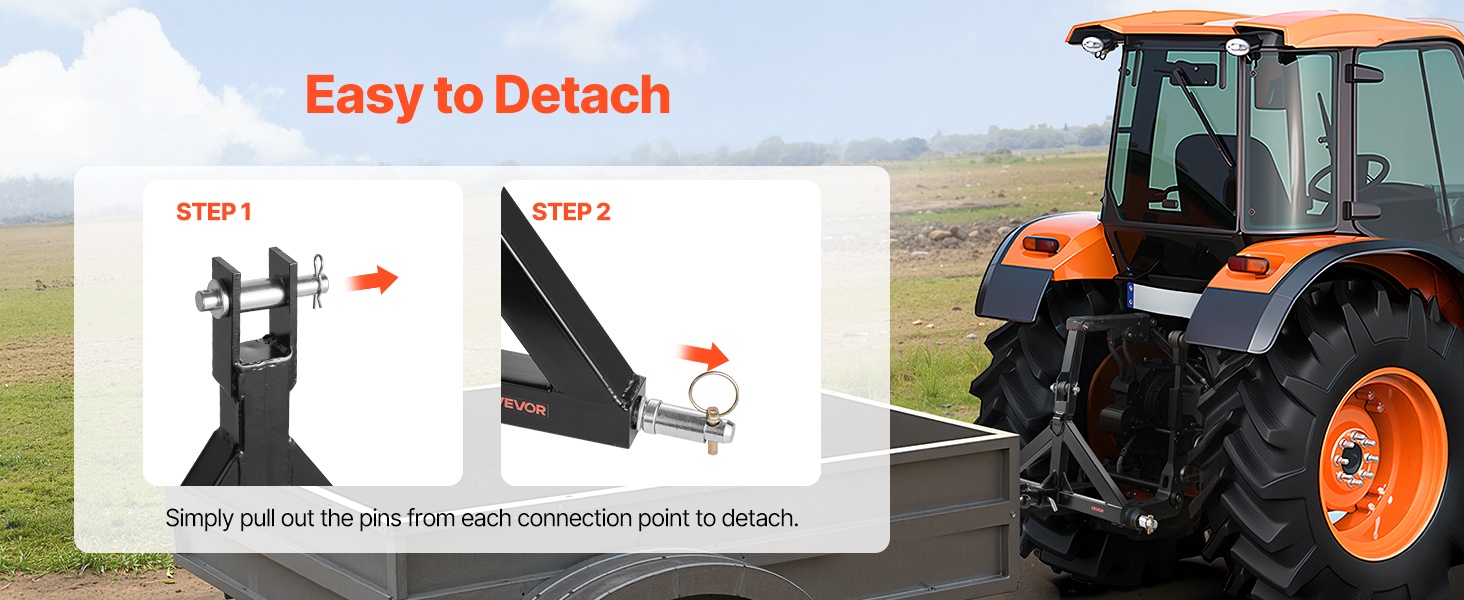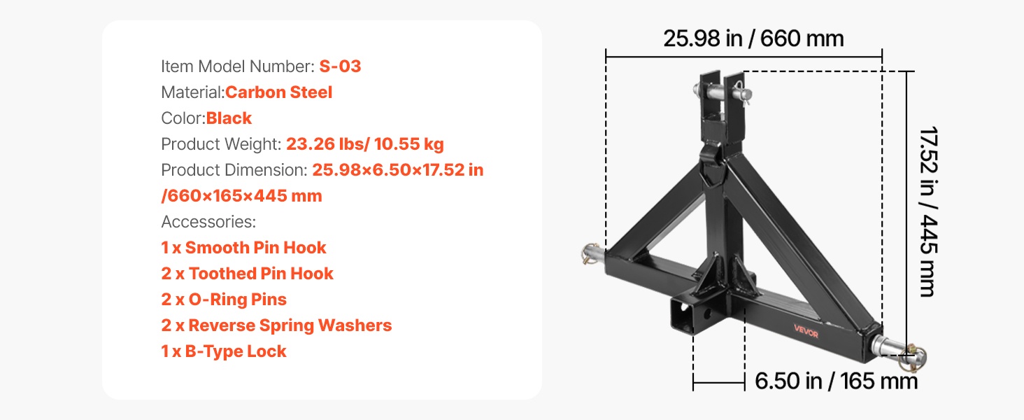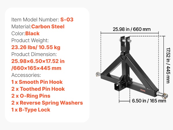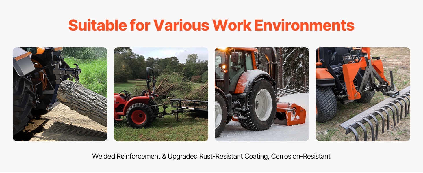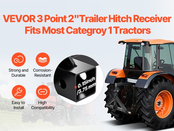 Tämä 3-pisteen vetolaite on valmistettu 0.15 in paksusta teräksestä, jossa on ruosteenesto-pinnoite. Vankka rakenne ja tarkka hitsaus tarjoavat luotettavan suorituskyvyn erilaisissa traktorin vetotehtävissä. Vetolaite sopii useimpiin 2 in vetokuulalla varustettuihin traktoreihin ja on helppo asentaa sekä irrottaa.