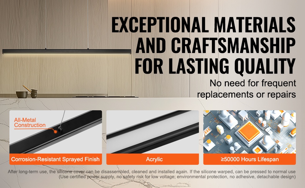 Lineaarinen malli sopii erityisen hyvin pitkän keittiösaarekkeen, ruokapöydän tai baaritason yläpuolelle, mutta sitä voidaan käyttää myös muissa oleskelutiloissa, joissa tarvitaan suoraa ja tasaista valaistusta.