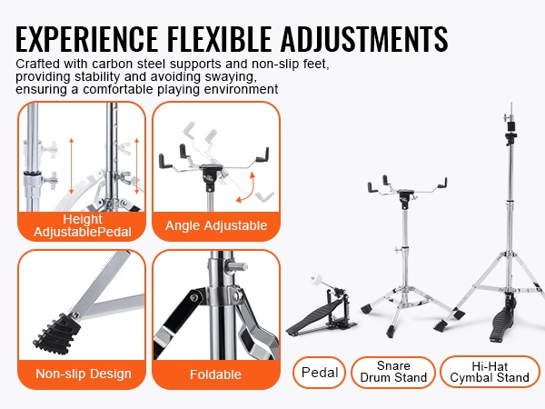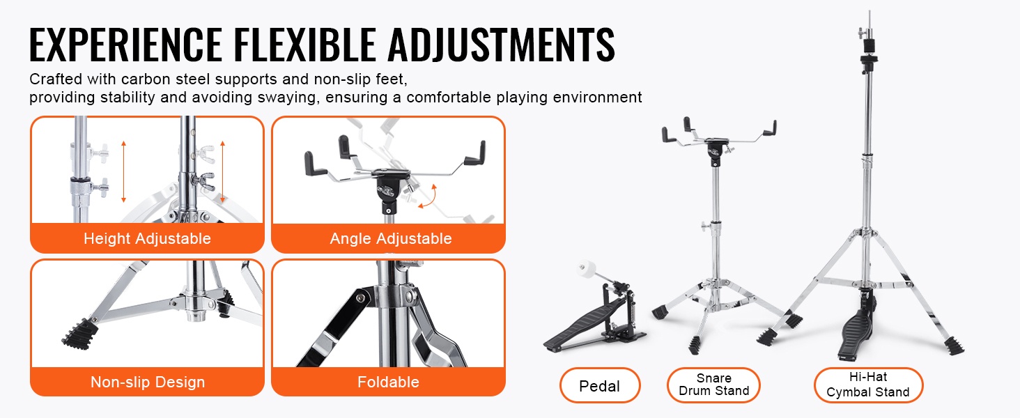 - Säätökelpoinen rumpujakkara ja vakaat telineet