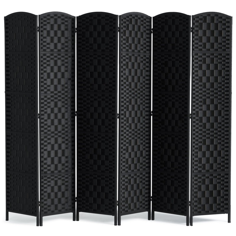 6-paneelinen taitettava tilanjakaja keisaripuurunko käsinkudottu paperirottinki musta