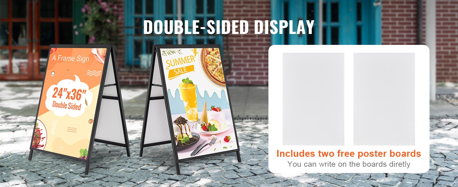 - Kaksipuolinen A-mallinen jalkakäytäväkyltti 24x36-tuumaisille julisteille