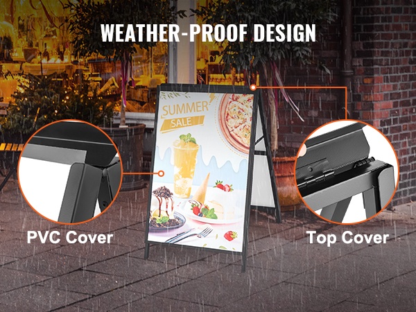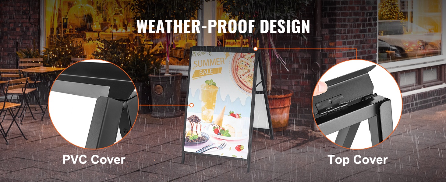 - Säänkestävä yläkansi ja PVC-suojat, jotka suojaavat julisteita sateelta