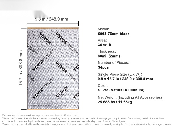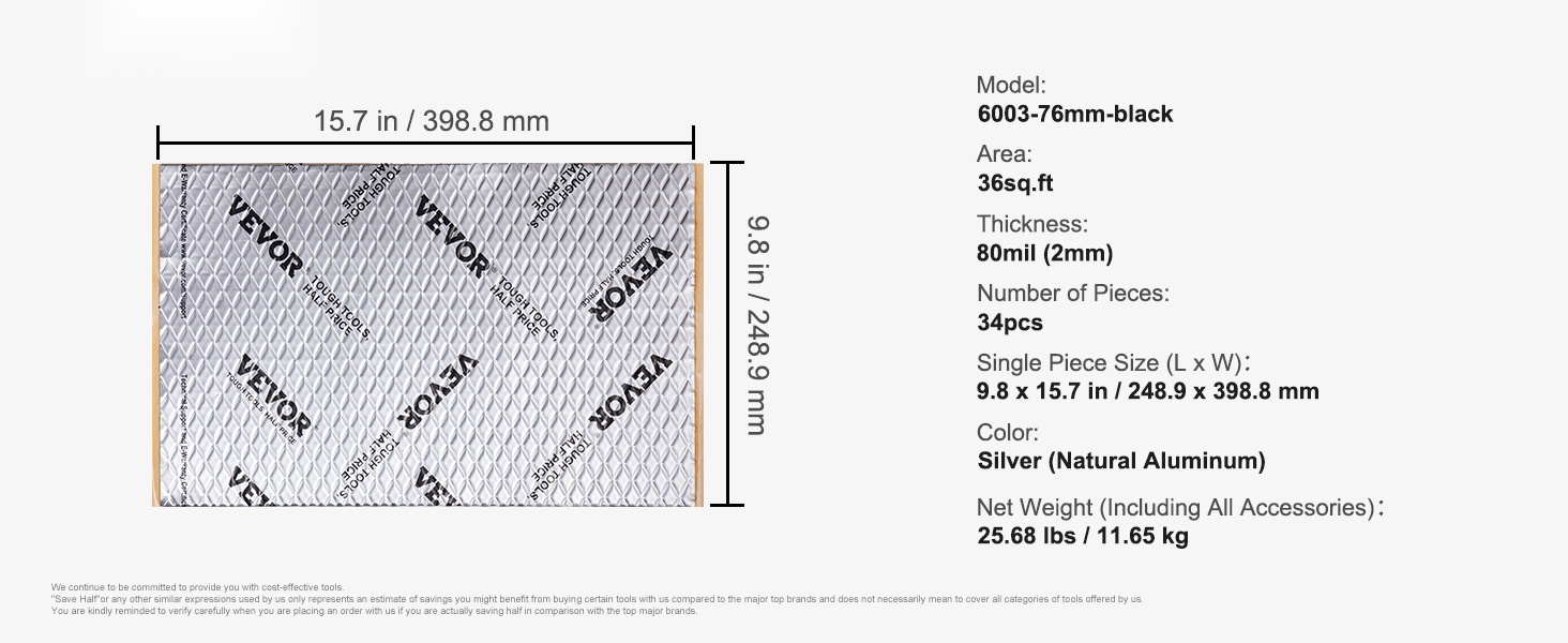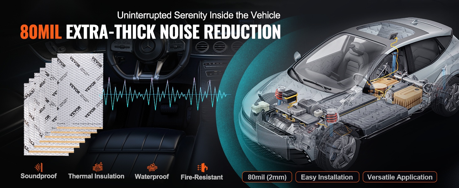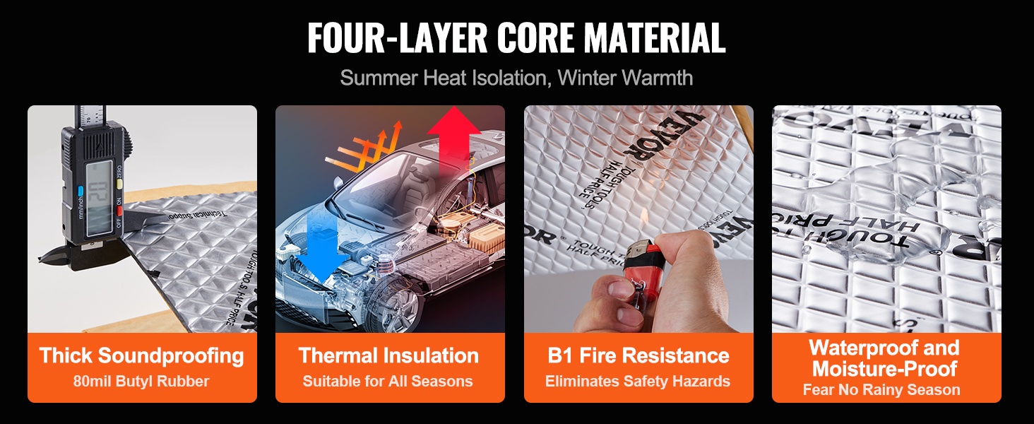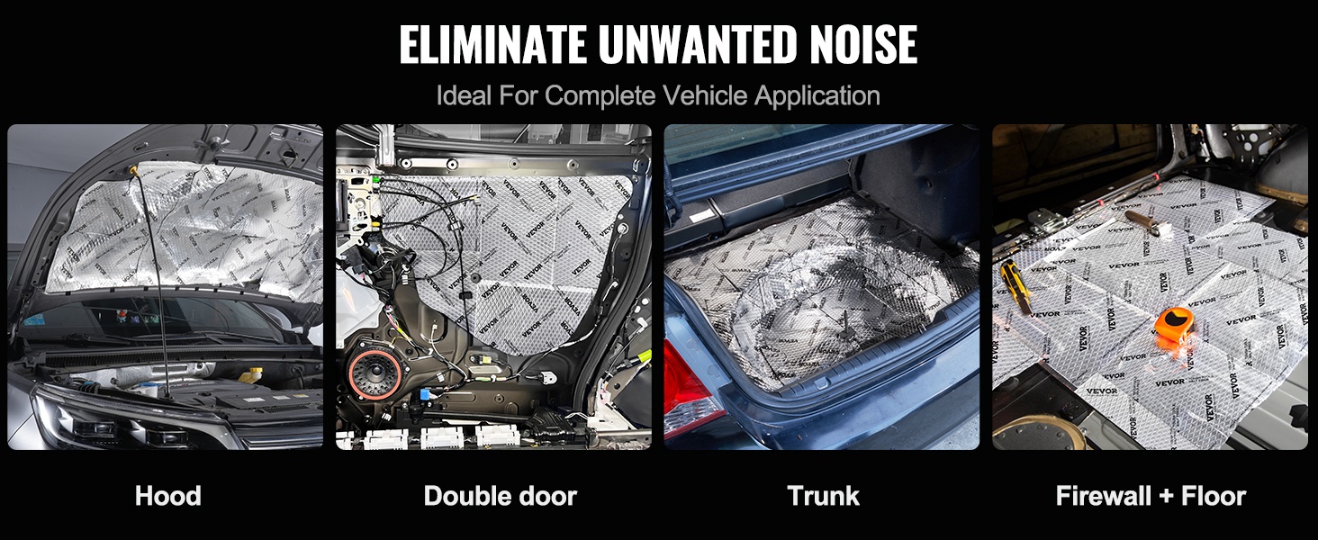 Paksu äänieristysmateriaali koostuu butyylikumipinnasta, lämpöä kestävällä alumiinifoliolla vahvistetusta kerroksesta ja tiheästä, ääntä vaimentavasta vaahdosta. Yhdessä ne vähentävät tehokkaasti tie-, moottori- ja rengasmelua sekä rajoittavat kuumuuden ja kylmän siirtymistä auton koriin.