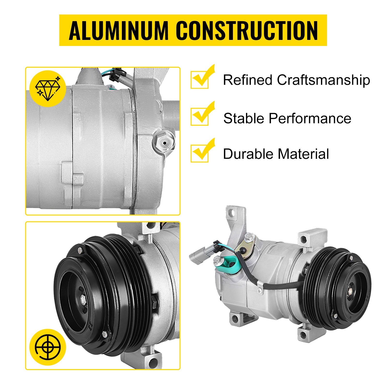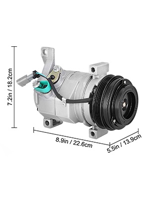 Tämä etuasennettava A/C-kompressori kytkimellä on suunniteltu 00-14 Cadillac, Chevy, GMC ja Hummer -malleihin moottorikokoille 4.8L, 5.3L, 5.7L, 6.0L, 6.2L ja 8.1. Kompressori on valmistettu kestävästä alumiiniseoksesta, se täyttää OEM-vaatimukset ja on suunniteltu pitkäikäiseen ja luotettavaan käyttöön.