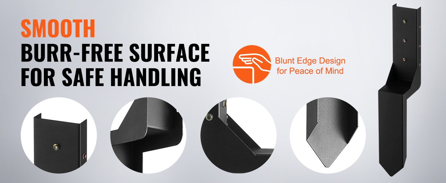 Tolppakiiloissa on pyöristetyt ja ei-terävät reunat, jotta naarmuuntumisen riski käytön aikana on mahdollisimman pieni. Pinta on sileä ja purseeton, joten kiilat on turvallista käsitellä ja asentaa myös paljain käsin.