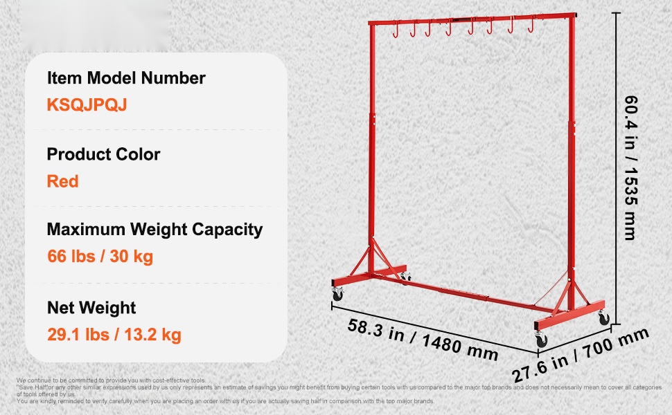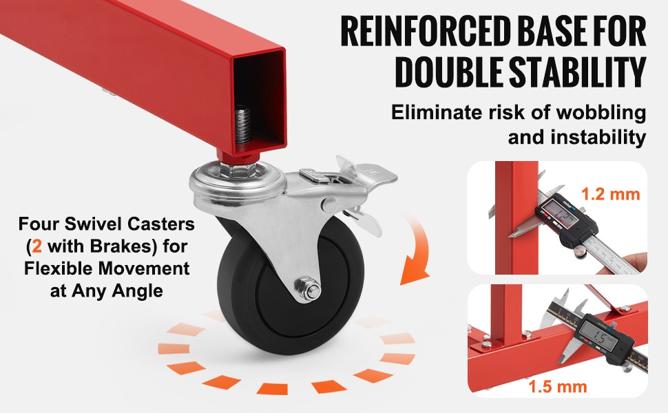 Ajoneuvo-osien maalausteline teräs säädettävä 152–213 cm 30 kg 8 koukkua 4 pyörää