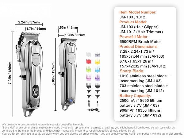 - Malli: JM-103 (hiustenleikkuri); JM-1012 (hiustrimmeri)