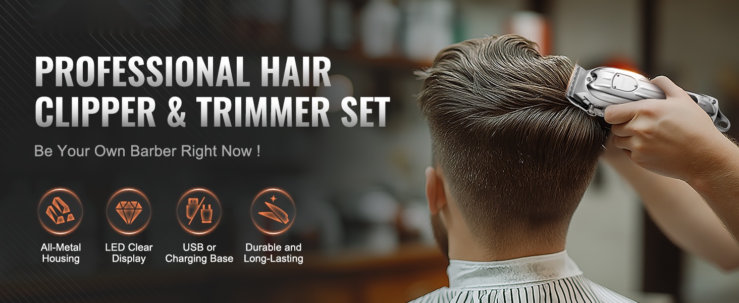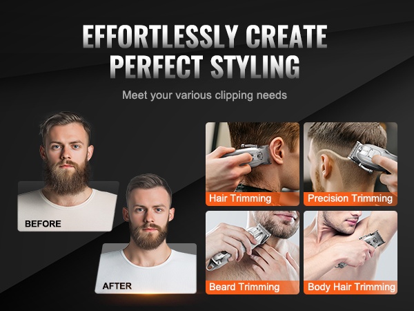 Setti soveltuu hiusten leikkuuseen, tarkkaan rajaamiseen ja parran muotoiluun. 2-in-1 miesten parranhoitosetti tarjoaa työkalut monenlaisiin tyyleihin kotona, joten erillisiä laitteita ei tarvita.