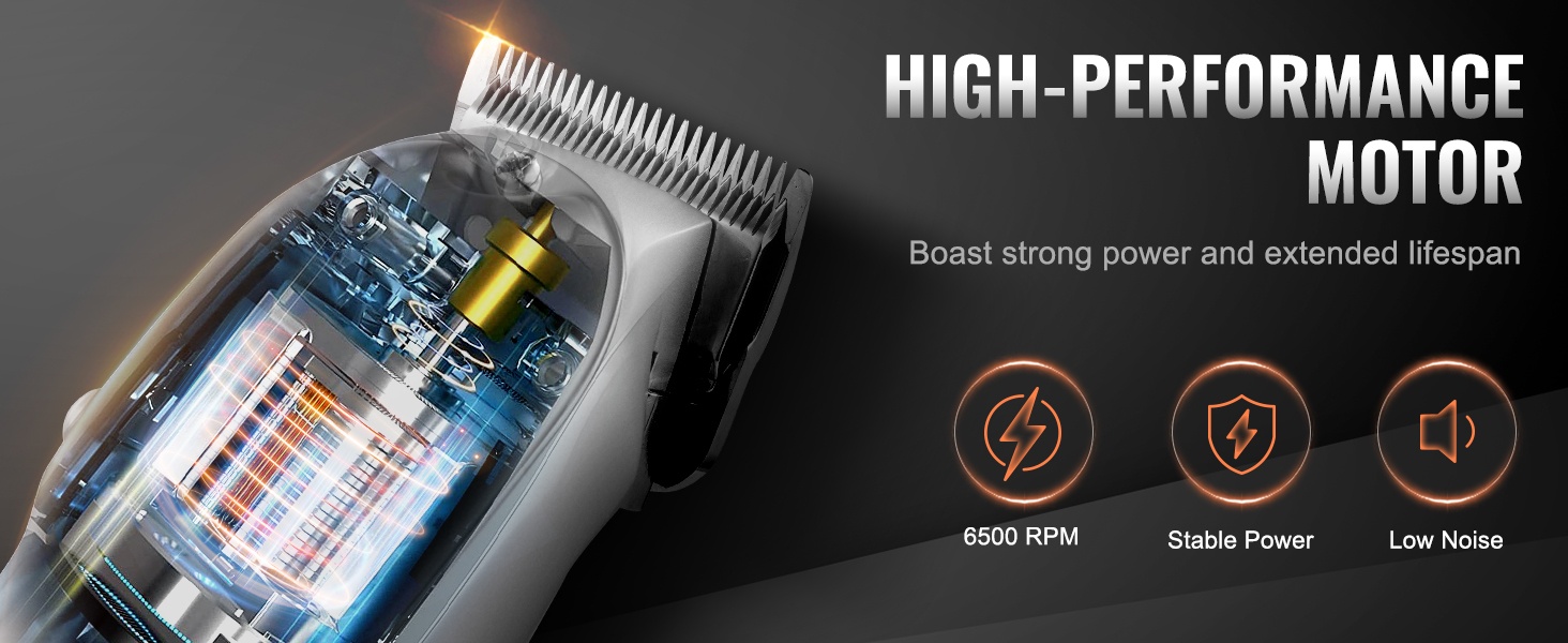 Hiustenleikkurissa on suorituskykyinen moottori, jonka nopeus on jopa 6500RPM. Se tarjoaa voimakkaan, mutta tasaisen leikkuun ja pitää äänen tason miellyttävän alhaisena. Tämä pidentää myös trimmerin käyttöikää ja tekee siistimisestä miellyttävämpää.
