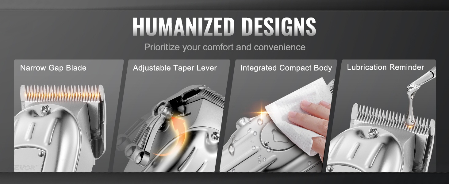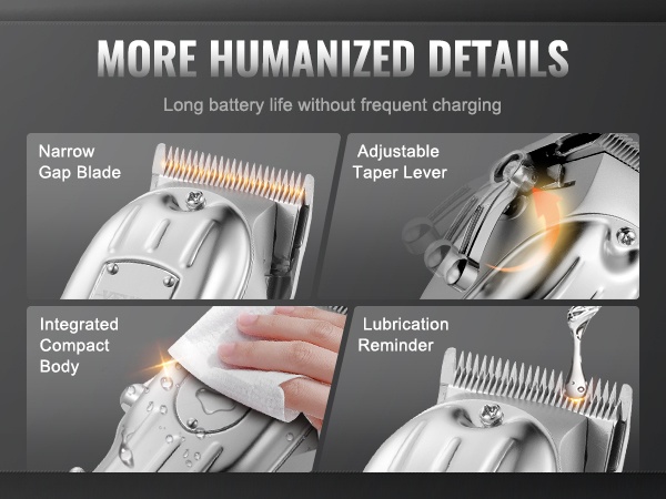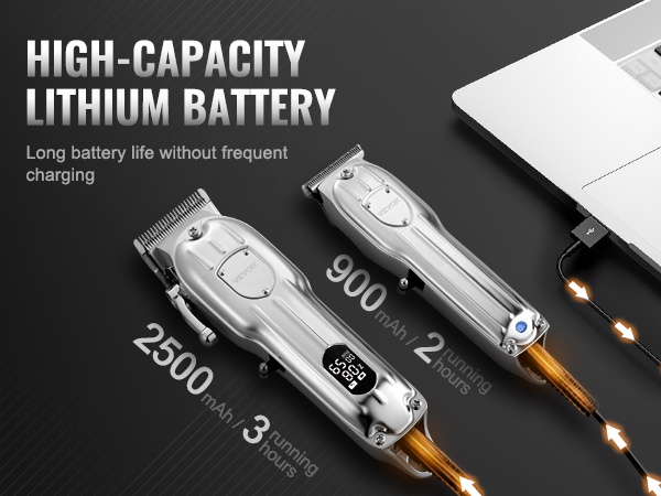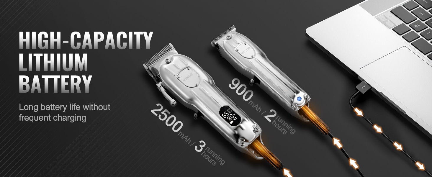 Akkukäyttöiset hiustenleikkurit tukevat sekä USB-latausta että telakkalatausta, joten ne on helppo sovittaa eri käyttötilanteisiin kotona ja matkoilla. Suurikapasiteettinen akku tarjoaa pitkän käyttöajan ja vähentää tarvetta jatkuvalle lataamiselle.