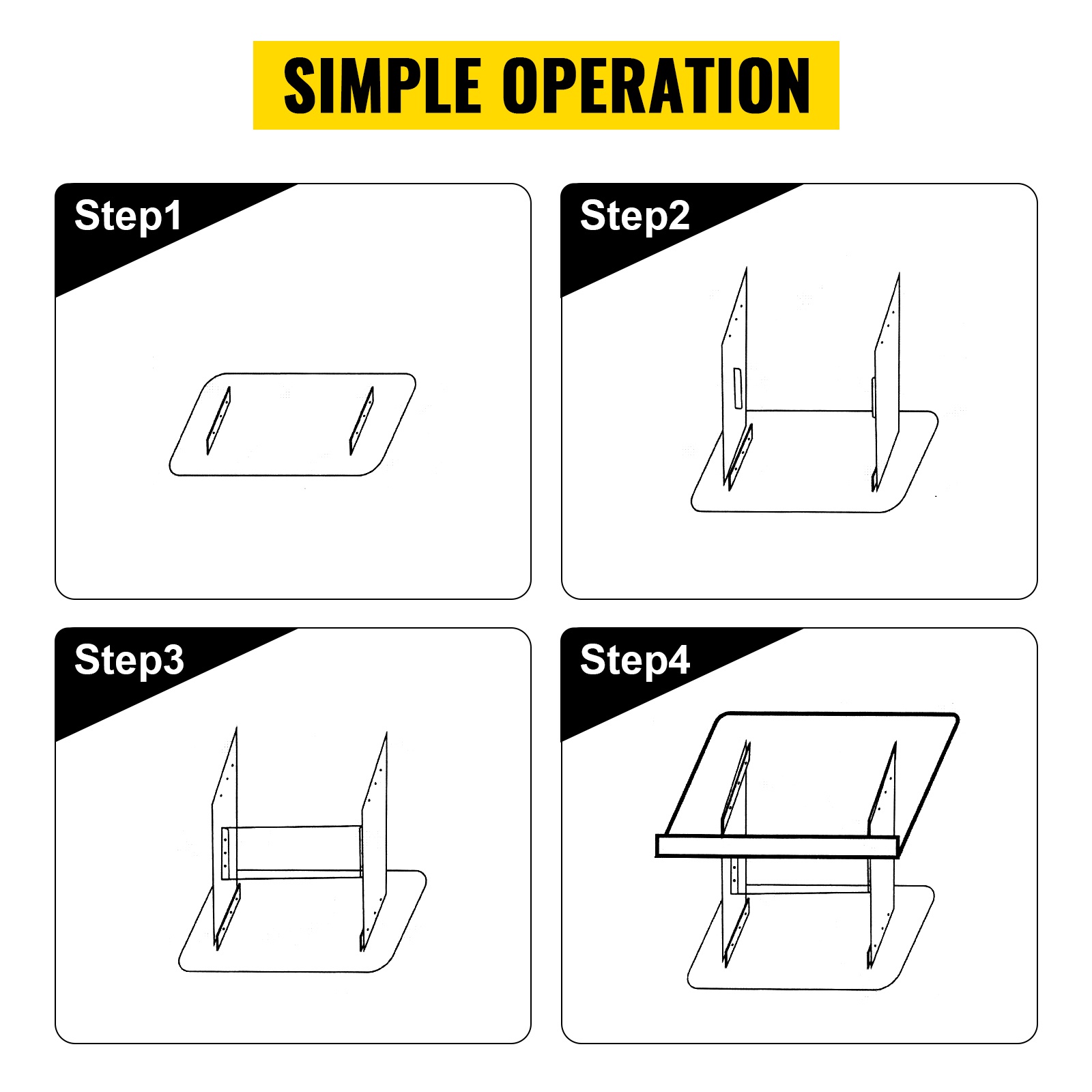Puhujapöytä on suunniteltu vaivattomasti koottavaksi ja purettavaksi. Levyt kiinnitetään tukevasti mukana tulevilla ruuveilla, ja kokoaminen onnistuu muutamassa vaiheessa.