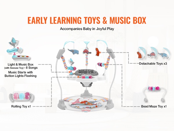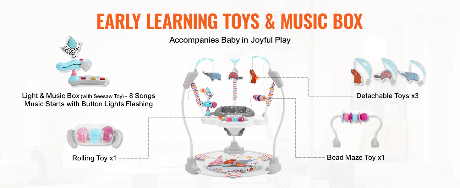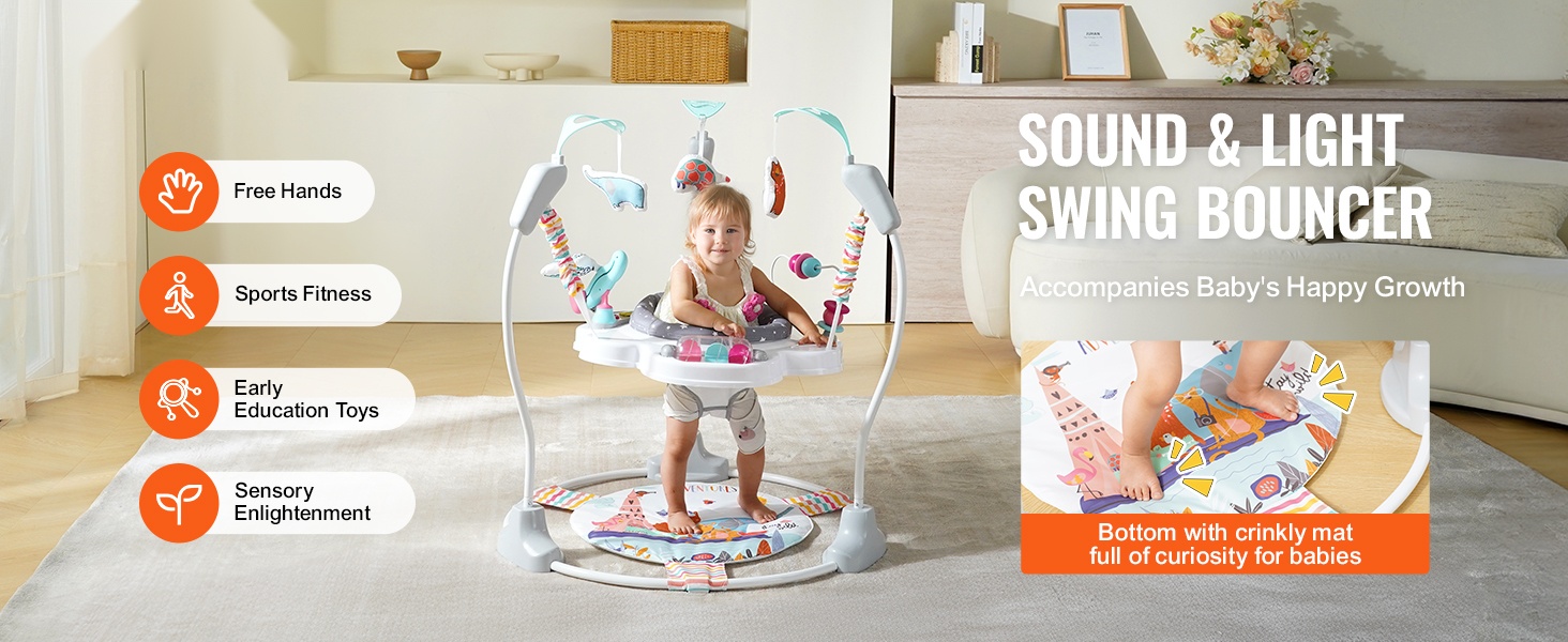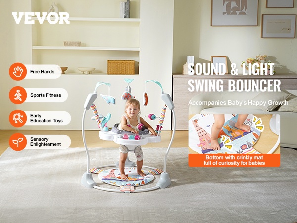 Tämä aktivitetikeskus sopii vauvoille, jotka jaksavat kannatella päätään itse, mutta eivät vielä ryömi tai kävele. Erityinen rapiseva pohja kannustaa vauvaa pompimaan ja potkimaan turvallisesti, mikä tekee leikistä miellyttävää ja virikkeellistä.