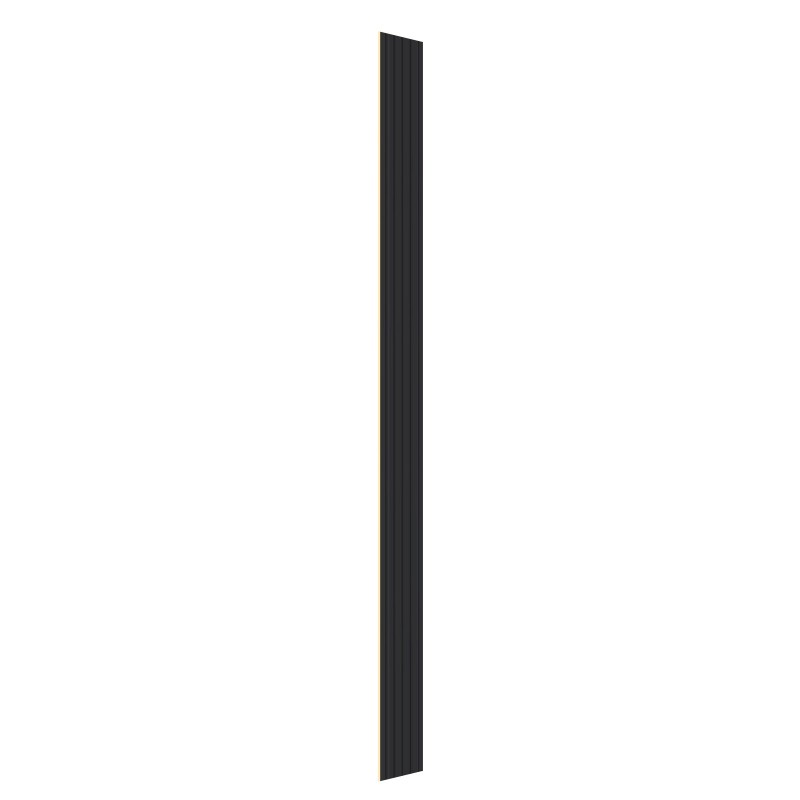 Paneelien säleissä on selkeä, luonnonpuuta muistuttava kuvio, joka tuo tilaan lämpöä ja rauhallista tunnelmaa. Laaja valikoima värejä ja mittoja (tässä mallissa matta musta) tekee sarjasta helposti yhdisteltävän erilaisiin sisustuksiin ja tyyleihin.