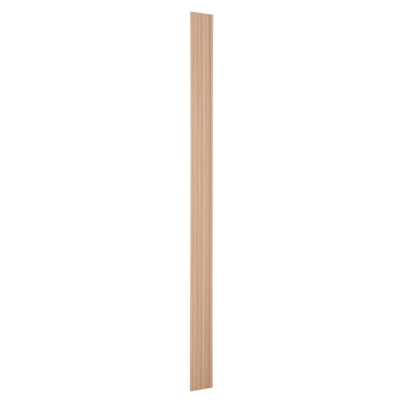 Paneelien selkeä puunsyykuvio antaa luonnollisen ilmeen, joka sulautuu helposti monenlaisiin sisustustyyleihin. Säleet tuovat seinälle rytmiä ja rakennetta sekä tekevät tilasta viimeistellyn ja harmonisen.