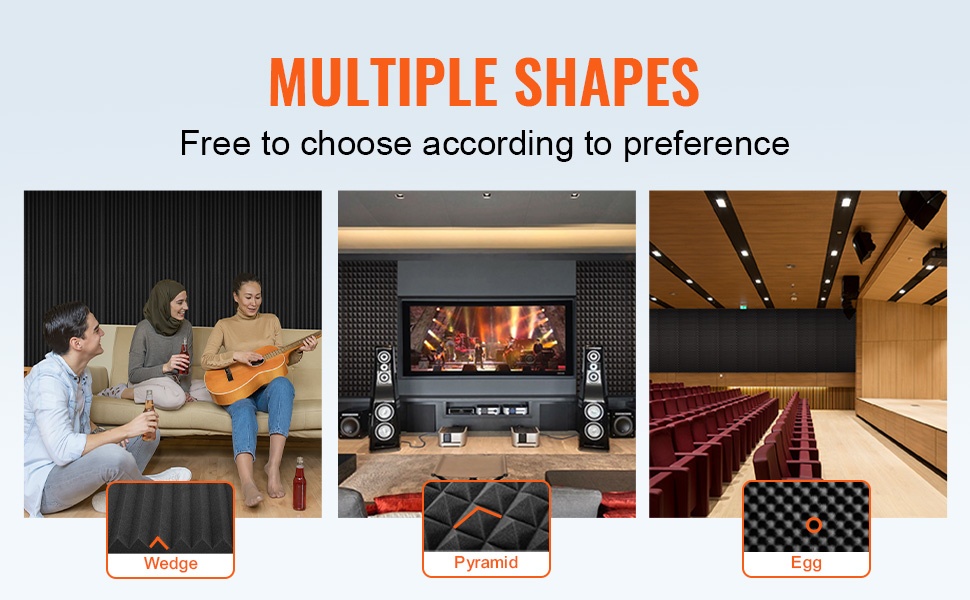 Paneeleita on saatavilla kiiloina, pyramideina ja niin sanottuina “munakenno”-tyyppisinä muotoina. Rakenteellinen pinta lisää vaahdon kokonaispinta-alaa ja siten tehostaa ääniaaltojen absorptiota. Paneelit soveltuvat esimerkiksi: