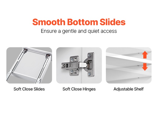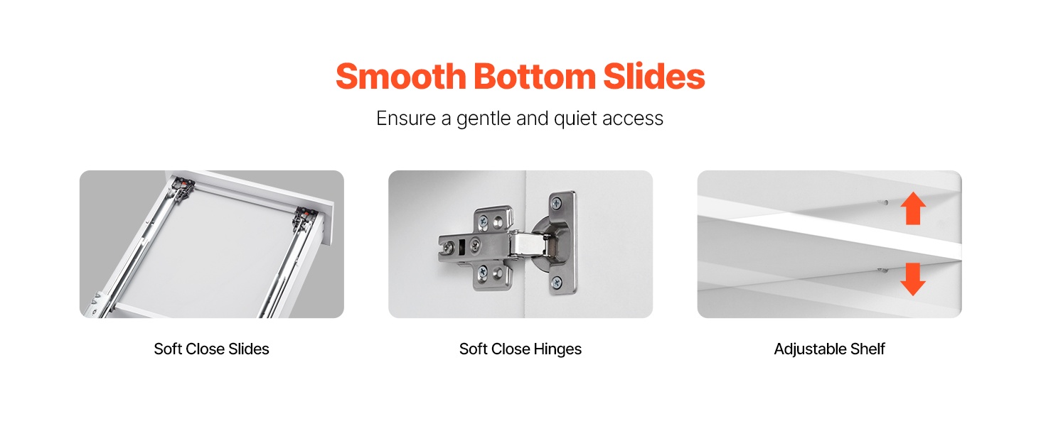 Pehmeästi sulkeutuvat saranat ja laatikkokiskot varmistavat, että ovet ja laatikko sulkeutuvat rauhallisesti ja hiljaisesti ilman kovaäänistä kolahdusta. Tämä pidentää myös kaapin käyttöikää vähentämällä iskuja rakenteisiin.