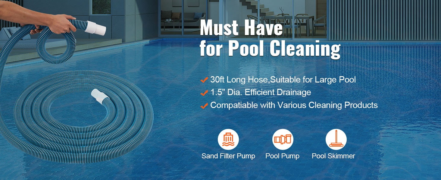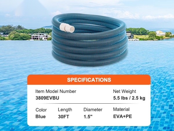 1.5-tuumaisen (38 mm) suuren halkaisijan ansiosta allasimuriletku sopii monenlaisiin pumppuihin ja puhdistustuotteisiin, joten se on käytännöllinen apuväline uima-altaan siivoukseen. 30 jalan (9.1 m) pituus kattaa laajan alueen ja soveltuu sekä pieniin että suuriin altaisiin.