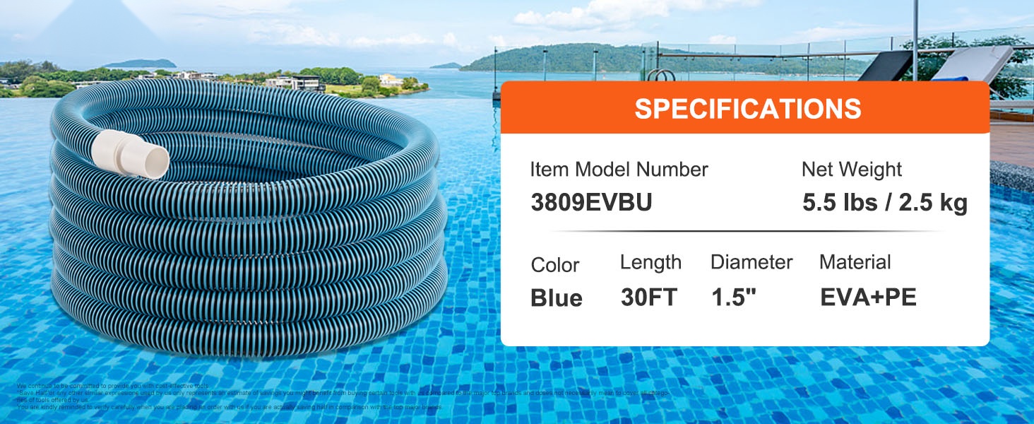 - 1.5-tuumainen (38 mm) halkaisija, yhteensopiva yleisten allaspumppujen ja -puhdistimien kanssa