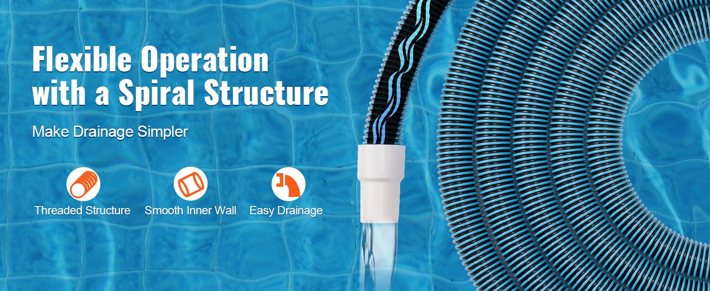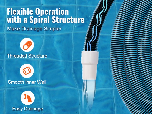 Pyörivä liitäntä tekee letkun asentamisesta helppoa. Tiivis ja lukittuva liitosrakenne parantaa yhteensopivuutta allaspumppujen kanssa, ehkäisee letkun painumista kasaan käytön aikana ja helpottaa altaan puhdistusta.