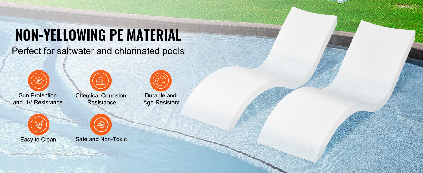 Kestävästä PE-muovista valmistettu allaslepotuoli sietää auringonpaistetta kellastumatta tai haurastumatta. Se soveltuu sekä suolavesi- että kloorialtaille, ja aurinkovoiteen jäämät on helppo pyyhkiä pois.