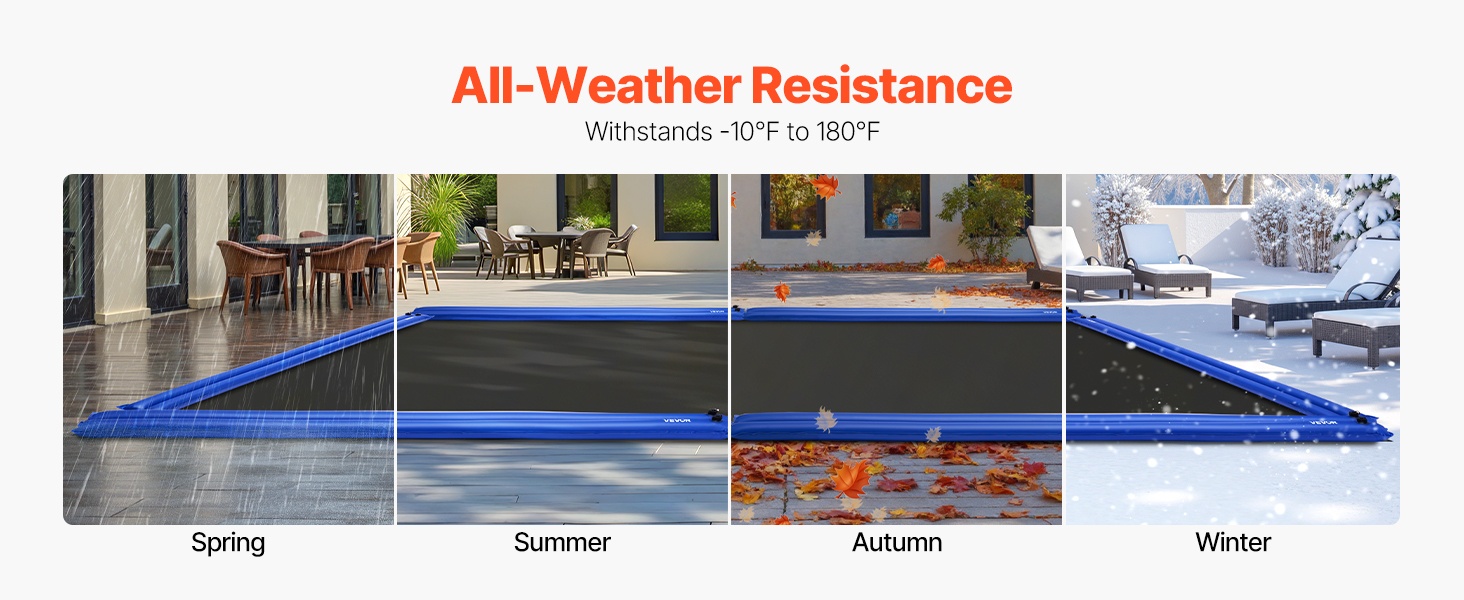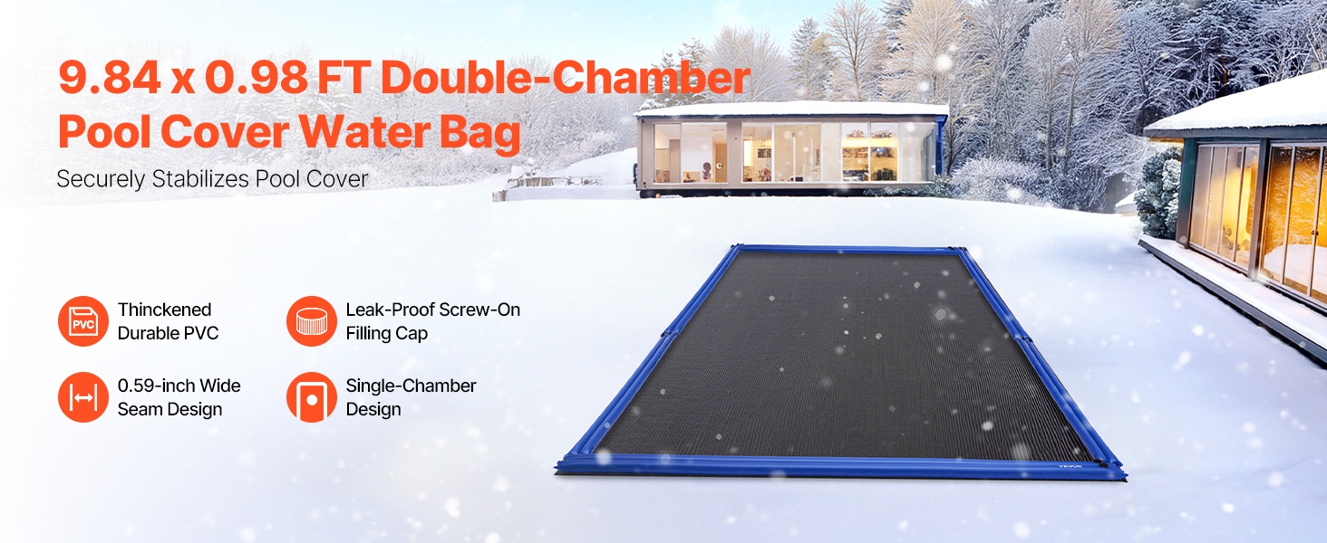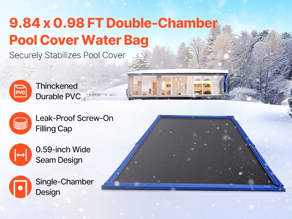 Yksi vesipussi on mitoiltaan 118.1 x 11.81 tuumaa, ja se toimii tehokkaana painona altaan talvipeitteelle. Täytetyt pussit pitävät peitteen tiukasti paikoillaan myös tuulisissa olosuhteissa ja vähentävät roskien päätymistä altaaseen.