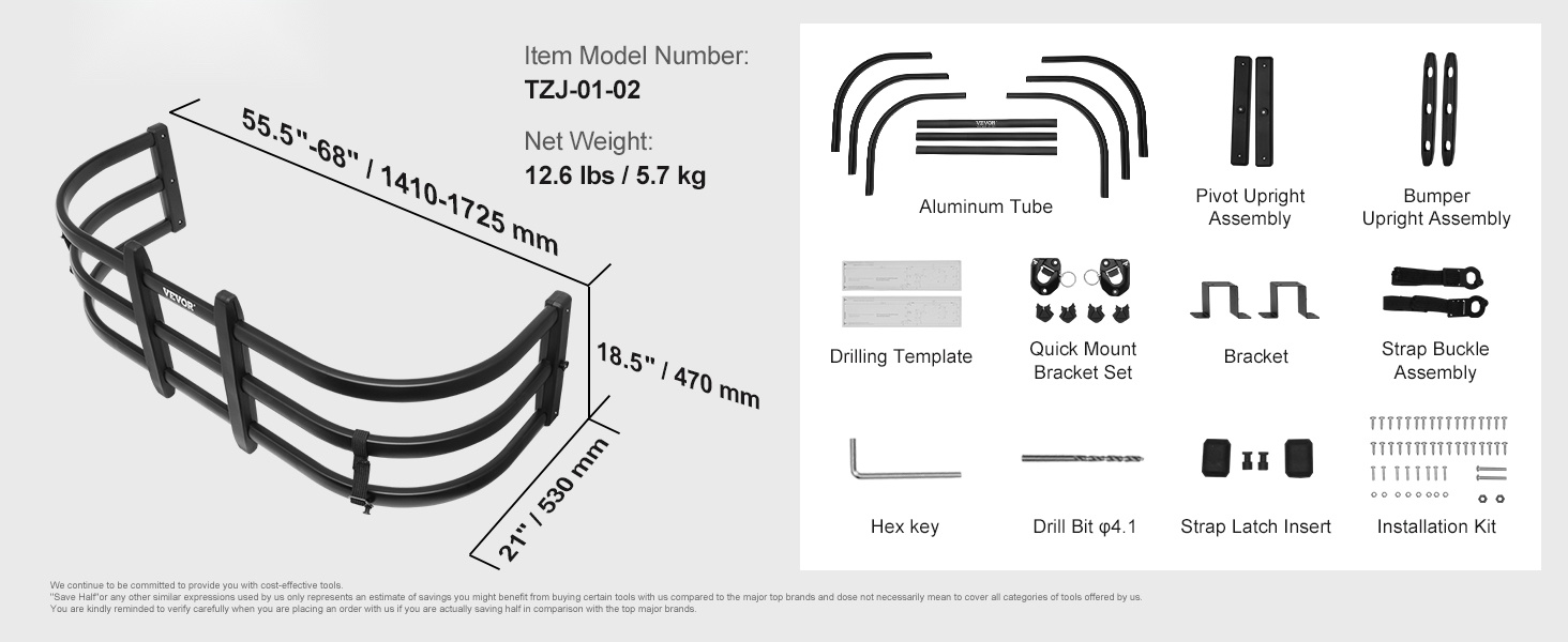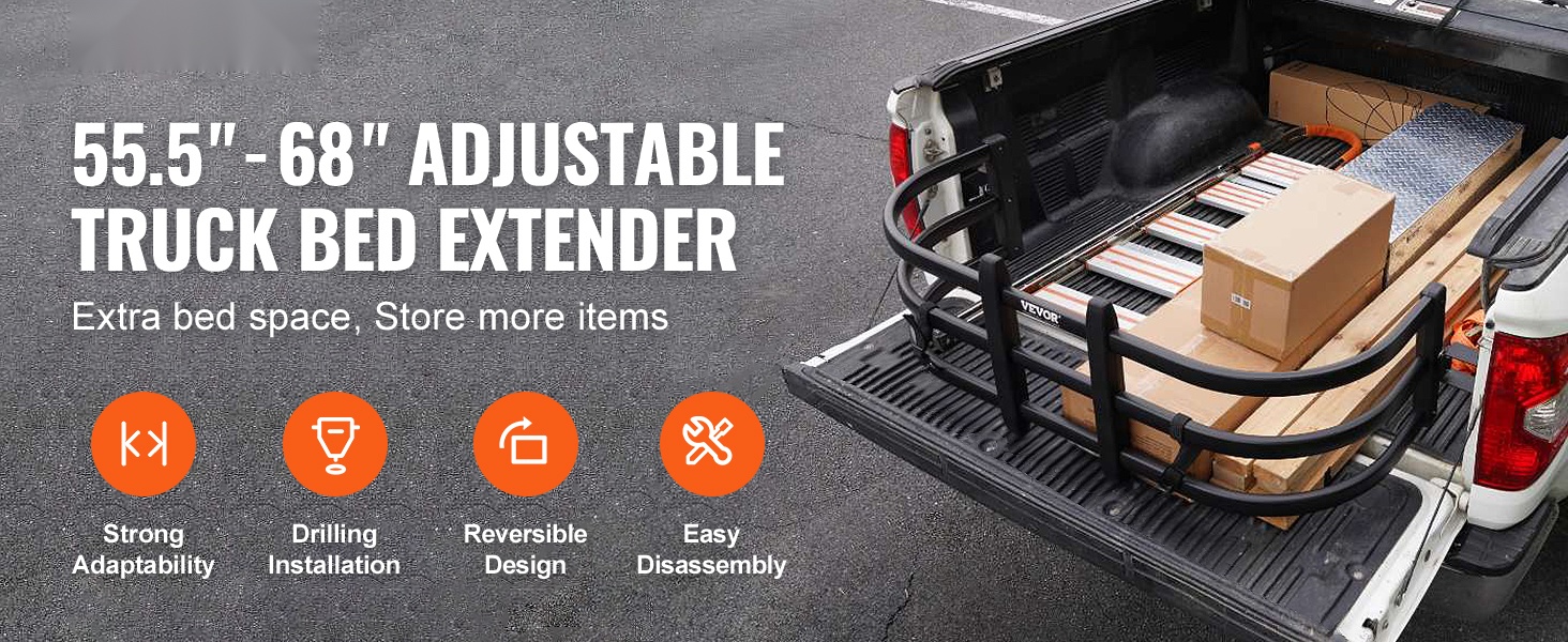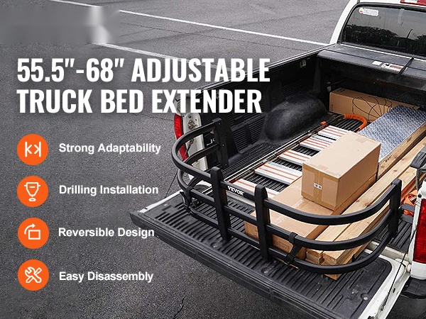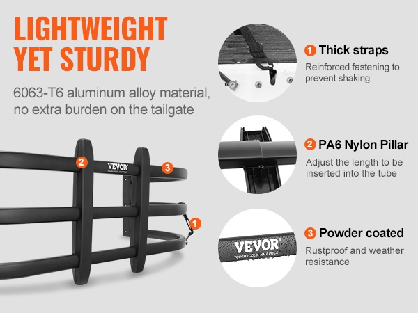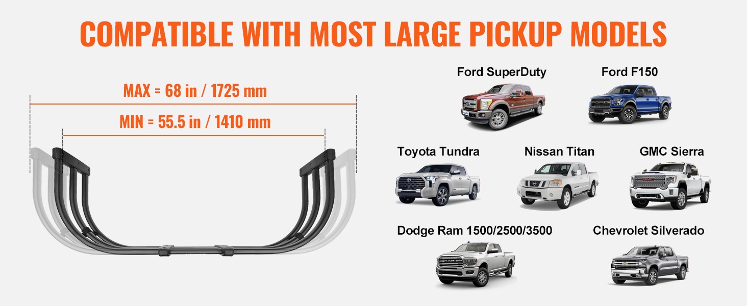 - Säädettävä pituus: 141–173 cm (55.5–68 tuumaa) sopii useimpiin avolava-autoihin