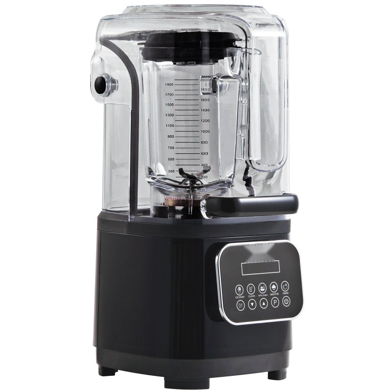 Työpöytämallinen tehosekoitin on varustettu melua vaimentavalla suojakuvulla, joten se toimii hiljaisemmin eikä häiritse ympäristöä.