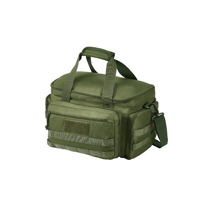 Ampumaratalaukku polyesteri neljälle pistoolille kuusi lipasta irrotettavilla jakajilla vihreä