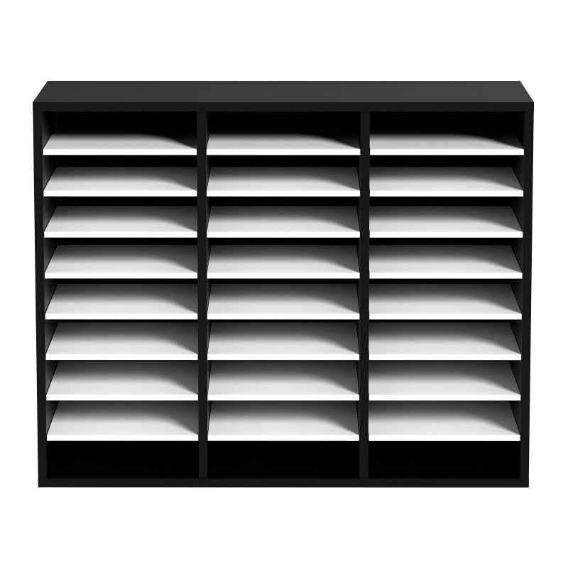 Asiakirjahylly MDF 27 lokeroa säädettävillä hyllyillä toimistoon kotiin ja kouluun musta valkoinen