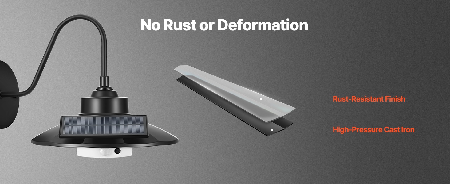 Älykäs aurinkokäyttöinen gooseneck-seinävalaisin ulkokäyttöön. Valaisin havaitsee automaattisesti ympäristön valon ja liikkeen, syttyy ja sammuu itsenäisesti ja vähentää näin energiankulutusta. Sisäänrakennettu 2550mAh akku ja 350LM valoteho tarjoavat valoa myös sähkökatkosten aikana. Korkeapainerauta ja ruostumista estävä, vedenpitävä pinnoite tekevät valosta sopivan terasseille, kuisteille ja autotalleihin.