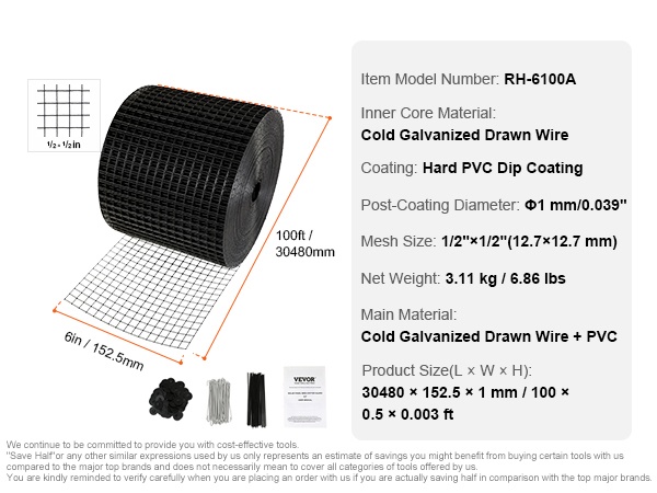 Jyrsijäsuojarulla on valmistettu galvanoidusta langasta, jonka paksuus on vahvistettu φ0.7 mm ja päällystetty kovalla PVC-upotuspinnoitteella. Pinnoite lisää kovuutta ja parantaa taivutuskestävyyttä, joten verkko säilyttää muotonsa mutta on silti tarpeeksi joustava asennukseen.