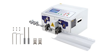 Automaattinen kuorintakone käsittelee 0,1-8 mm² johtoja, säädettävä kuorintapituus 0-50 mm, monipistekuorinta jopa 11 kohtaan, tarkka mikro-tietokoneohjaus, 4000-5000 kpl/h, mukana oikaisin ja keräysalusta.