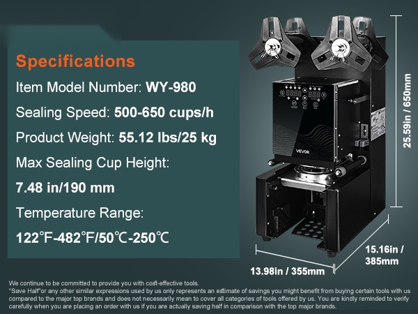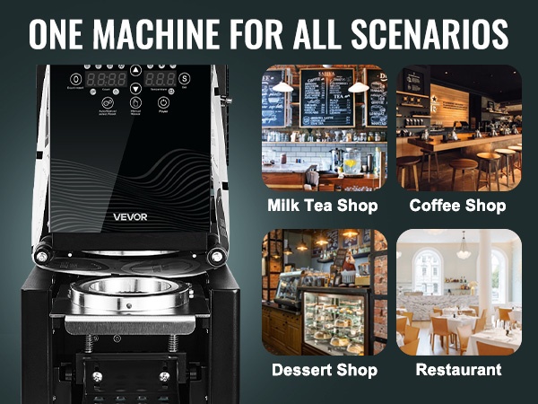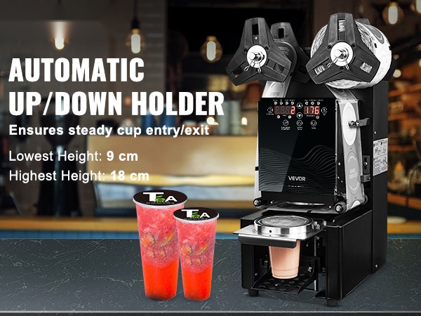 Tämä täysin automaattinen kupinsuljentakone soveltuu erikorkuisille kupeille ja tarjoaa tarkan, siistin ja nopean suljennan esimerkiksi bubble tea -juomille, kahville ja muille kylmille tai kuumille juomille. Digitaalinen ohjauspaneeli helpottaa lämpötilan ja toiminnan hallintaa.