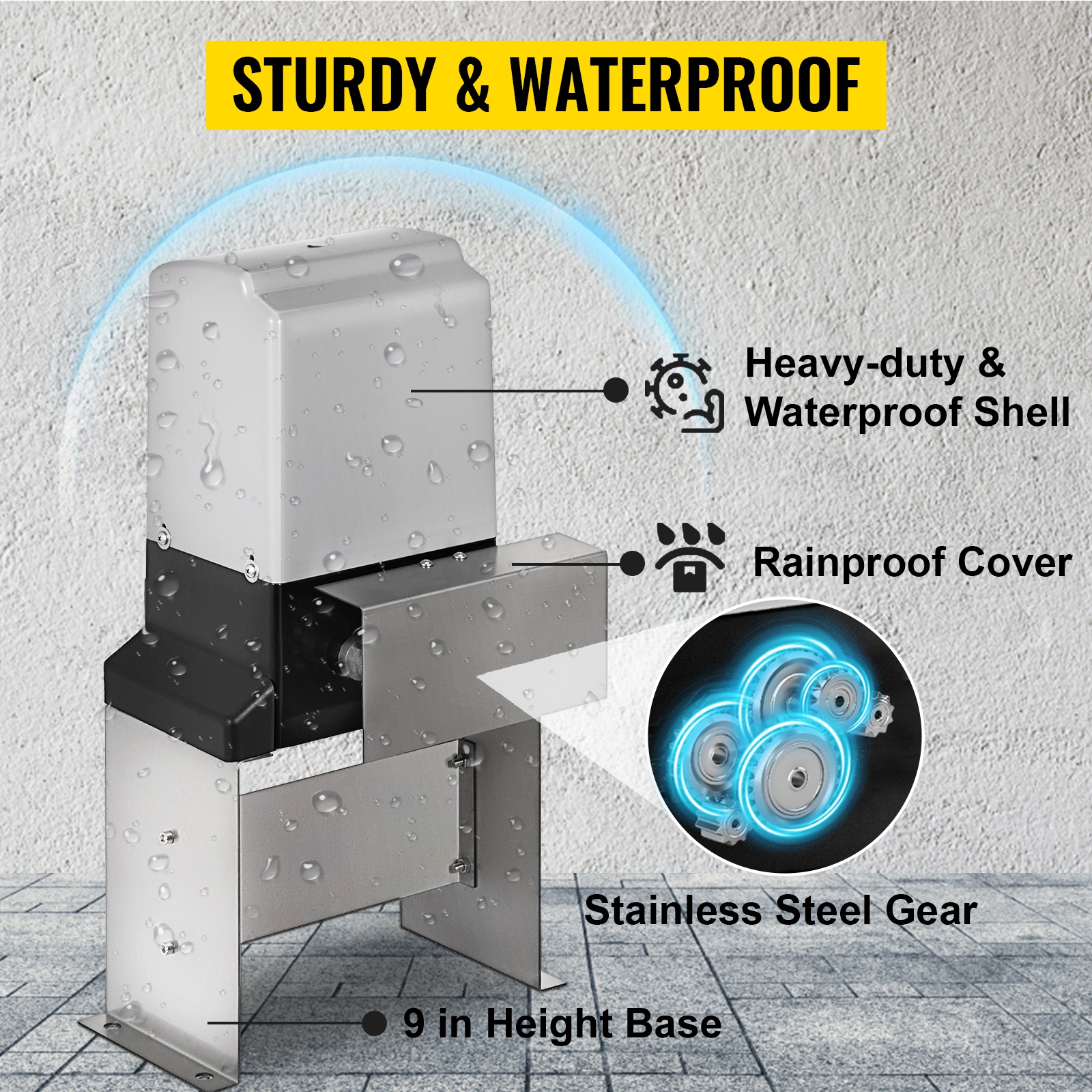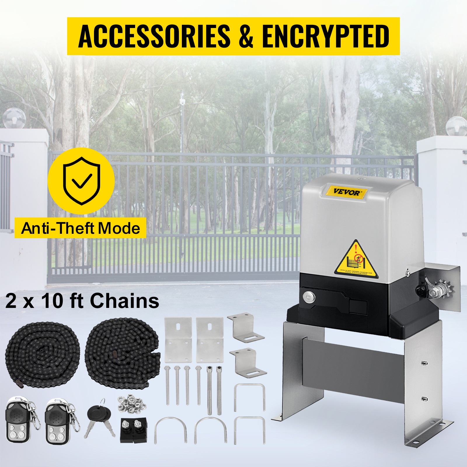 Mekaaninen liukuportin avaaja lisää kiinteistösi turvallisuutta ja helpottaa arkea. Laite liikuttaa jopa 3100 lbs / 1400 kg painoisia portteja ja mukana tulee 2 langatonta kaukosäädintä sekä 2 x 10 ft ketjua. Sähkökatkon varalta paketissa on 2 hätävapautusavainta, joiden avulla portin voi avata käsin. Turvatoiminto pysäyttää ja kääntää portin, jos anturi havaitsee esteen, mikä suojaa erityisesti lapsia ja lemmikkejä.
