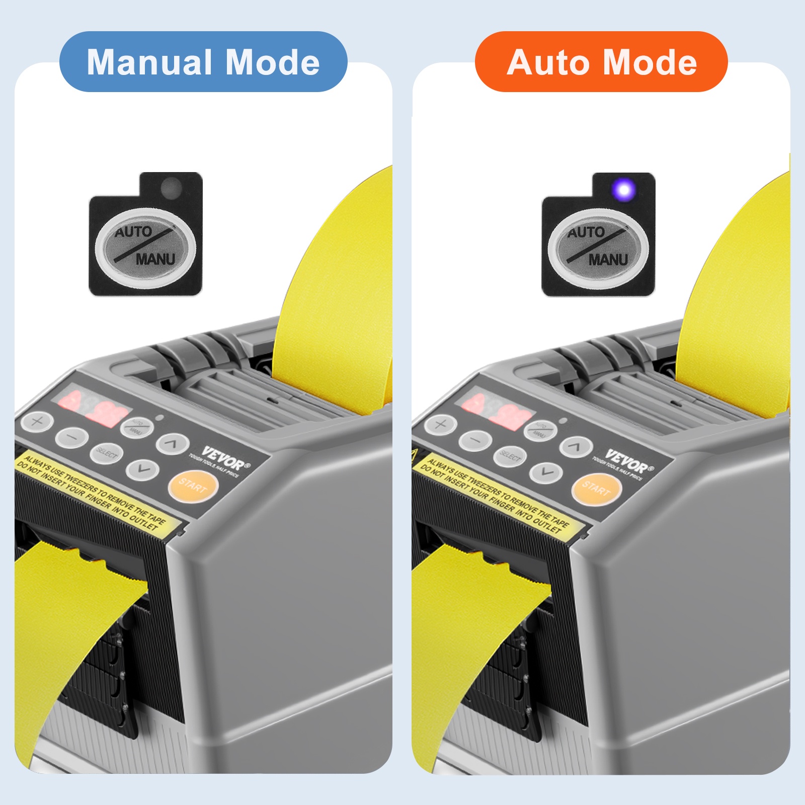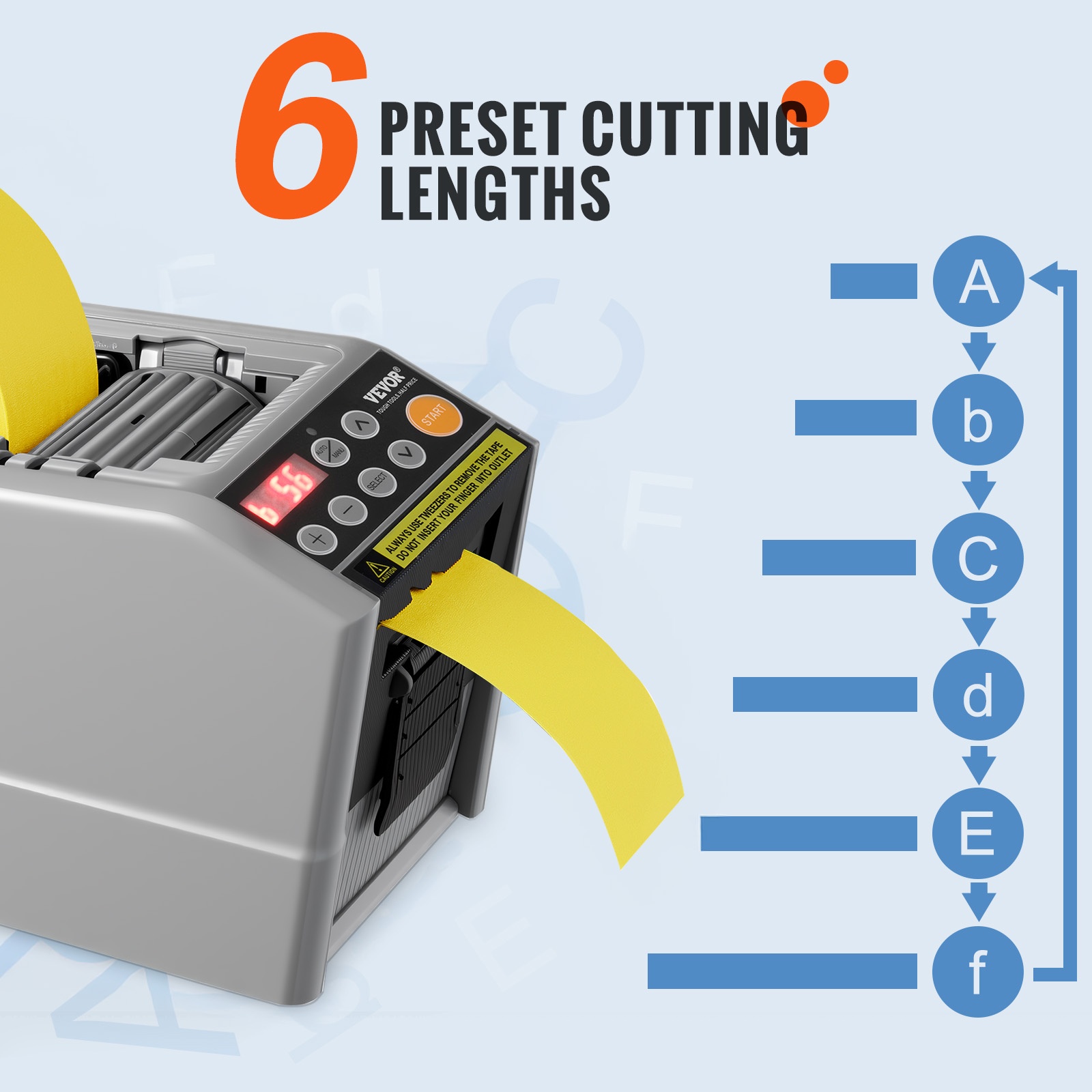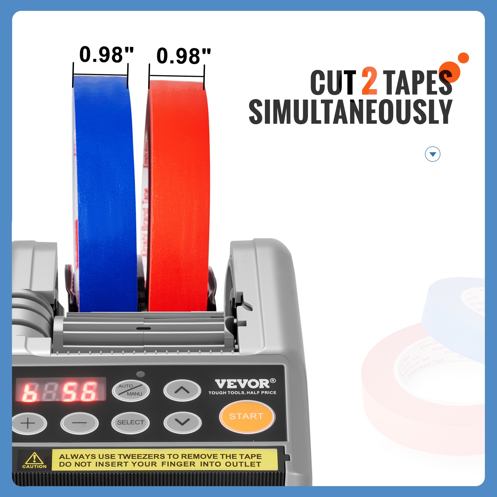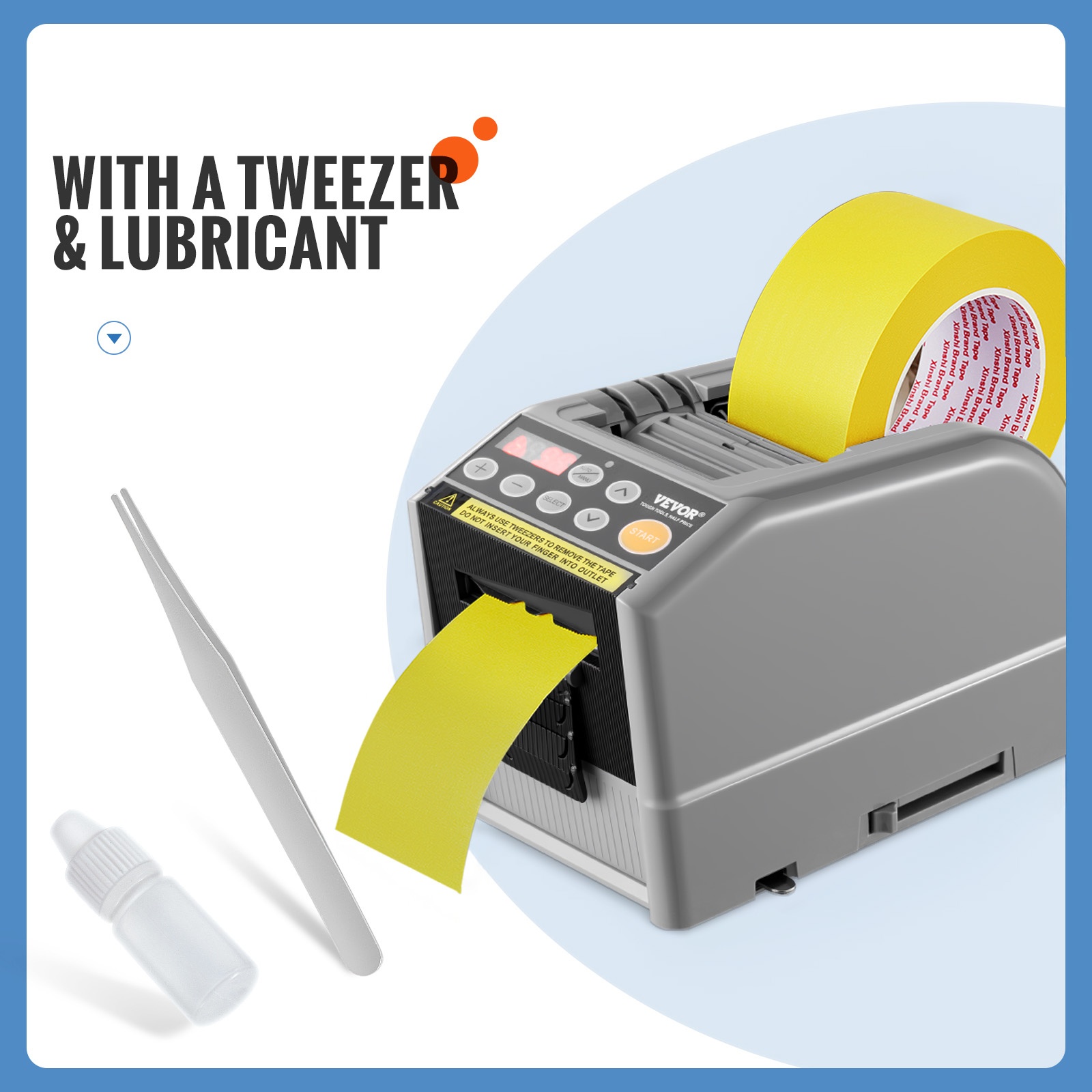 Tämä automaattinen teippileikkuri helpottaa pakkaus- ja teippaustöitä toimistoissa, varastoissa, tuotannossa sekä myymälöissä. Laite syöttää ja katkaisee teipin tarkasti valitsemaasi pituuteen, ja käytettävissä on sekä käsikäyttöinen että automaattinen tila.