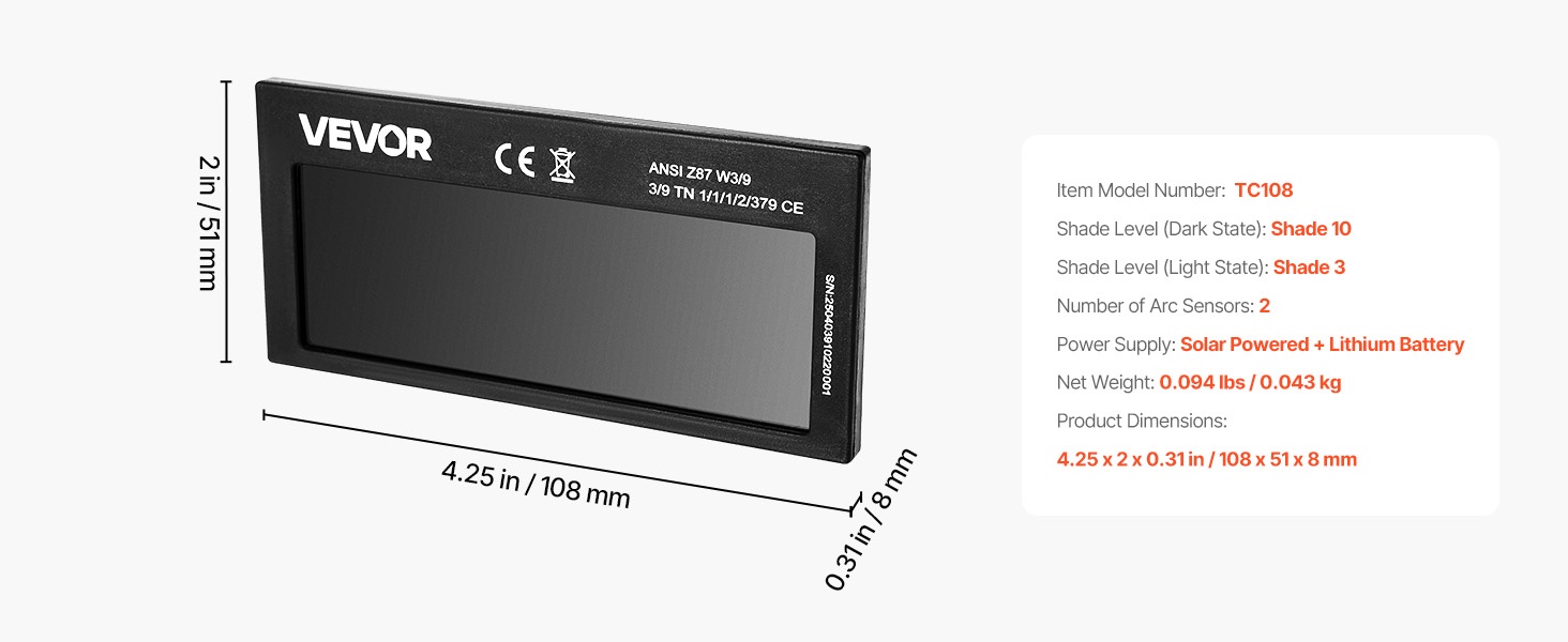 Hitsauslinssissä on 5–13 säädettävä tummuusalue, jota voidaan mukauttaa erilaisiin hitsausmenetelmiin ja -virtoihin. Se vähentää tehokkaasti valokaaren häikäisyä, parantaa näkyvyyttä ja tukee turvallista ja sujuvaa työskentelyä.