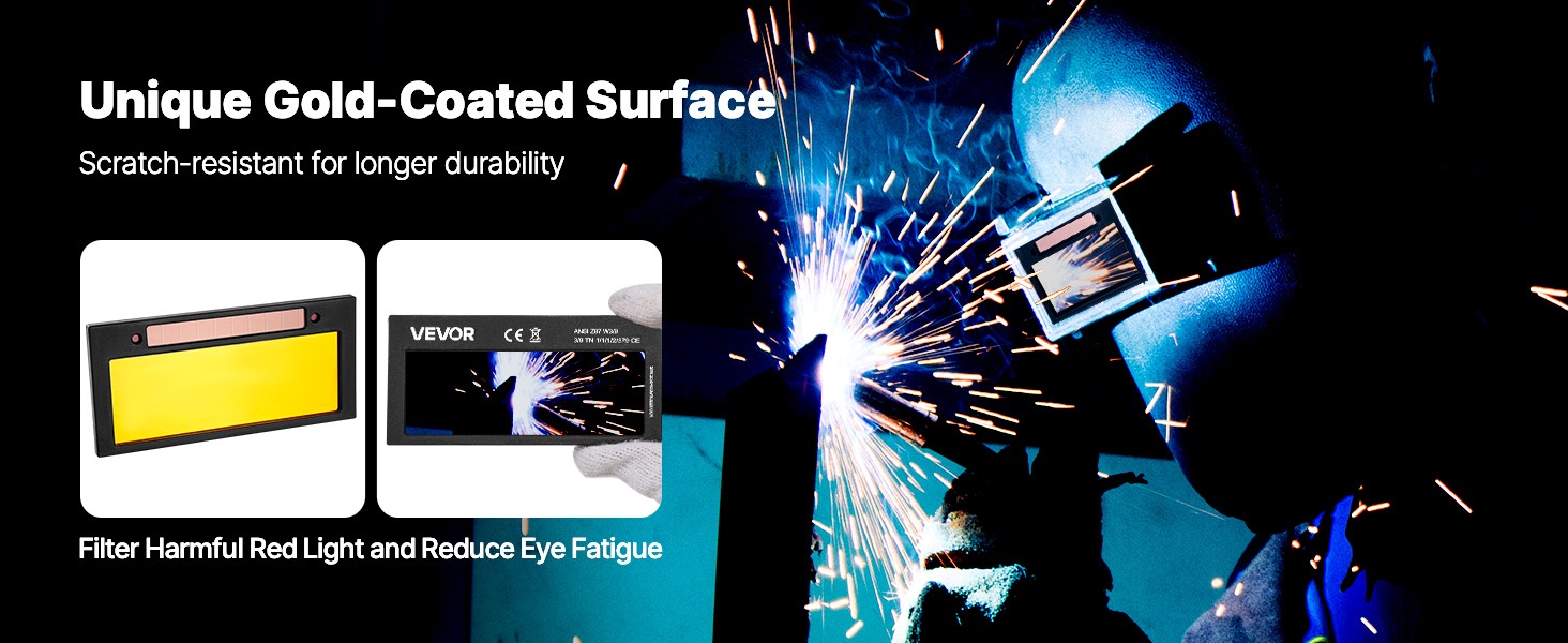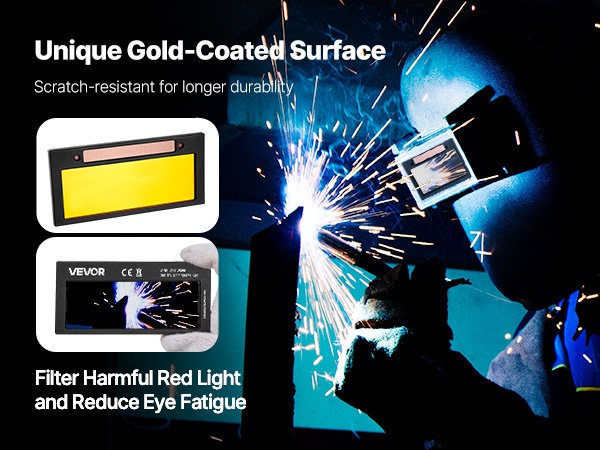 Automaattisesti tummuva hitsauslinssi on varustettu kestävyyttä parantavalla kultapinnoitteella. Siinä on 3 säädettävää asetusta – tummuustaso, viiveaika ja herkkyys – jotta linssi voidaan säätää tarkasti erilaisten hitsaustehtävien vaatimuksiin.