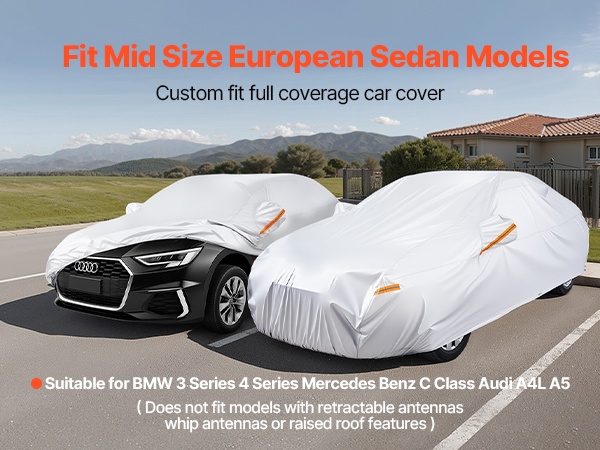 - Kokonaan auton peittävä malli täyskokoisille eurooppalaisille sedan-autoille