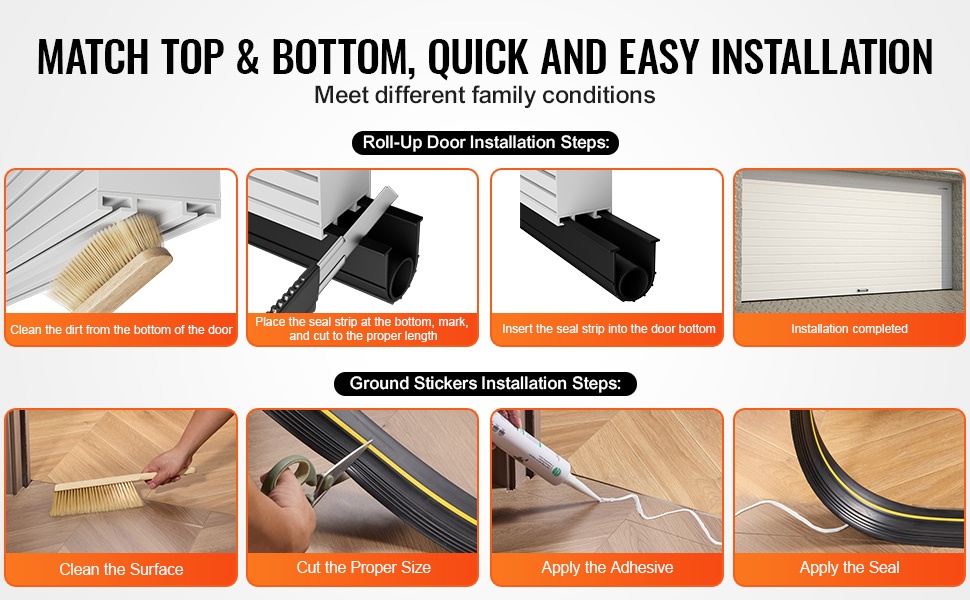Tämä autotallin oven kynnys- ja alatiivistesarja auttaa pitämään autotallin siistimpänä ja paremmin suojattuna. Korkealaatuisesta PVC-muovista valmistettu tiiviste kestää ajoneuvojen painon ja sulkee tehokkaasti pölyn, veden ja vedon pääsyn oven alta. Materiaali säilyttää joustavuutensa laajalla lämpötila-alueella -40℉ – 284℉ ja sopii monenlaisiin autotalli- ja varasto-oviin.