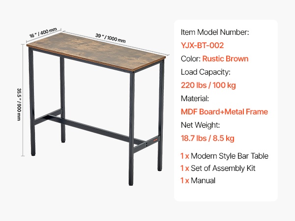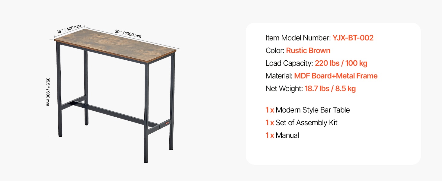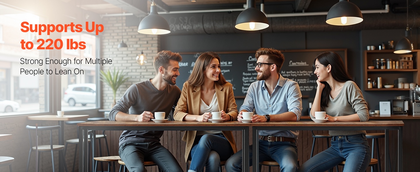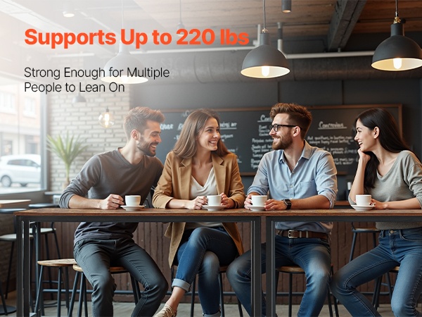 Kestävä metallirunko kantaa jopa 220 lbs / 100 kg, joten pöytään voi huoletta nojata useampikin henkilö samanaikaisesti.