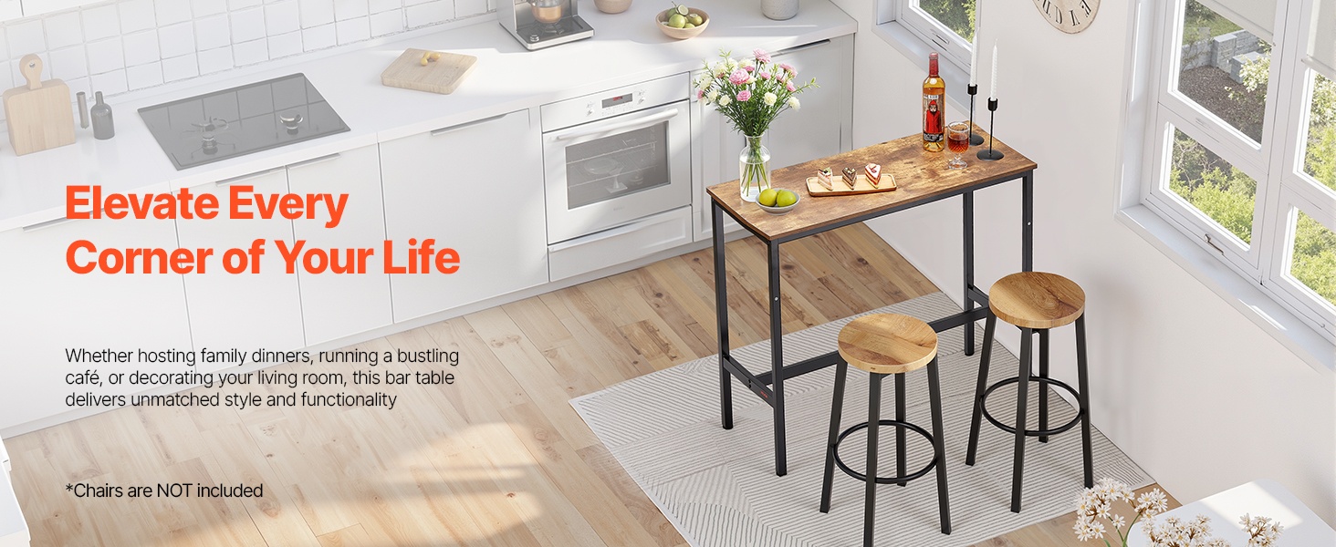Korkea baaripöytä ei ole vain ulkonäköä varten, vaan se on suunniteltu kestämään päivittäistä käyttöä. Tukeva runko ja naarmuuntumista kestävä pinta sopivat sekä vilkkaisiin iltoihin että arjen ruokailuhetkiin kotona.