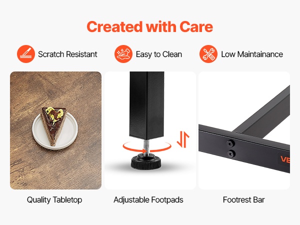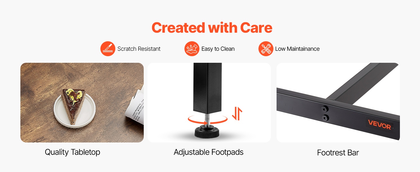 Säädettävät jalkatassut auttavat tasaamaan pienet epätasaisuudet lattialla ja pitävät pöydän tukevasti paikoillaan. Pöytä sopii hyvin esimerkiksi ruokailutilaan, olohuoneeseen tai työtilaan.