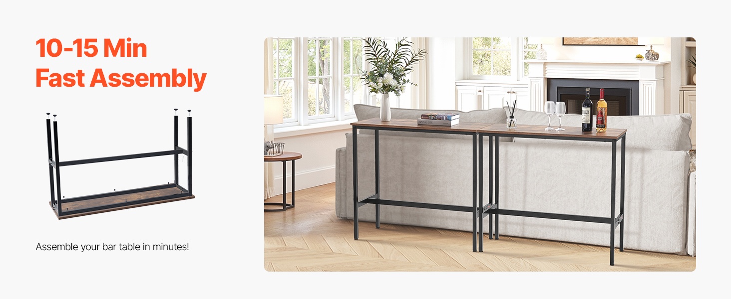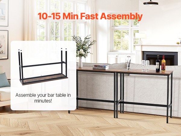 Pöytä on helppo koota, ja kokoamiseen kuluu yleensä vain noin 10–15 minuuttia. Saat korkean baaripöydän käyttövalmiiksi nopeasti.
