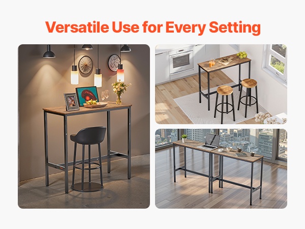 - Sopii baaritiskiksi, seisomatyöpisteeksi tai tarjoilupöydäksi