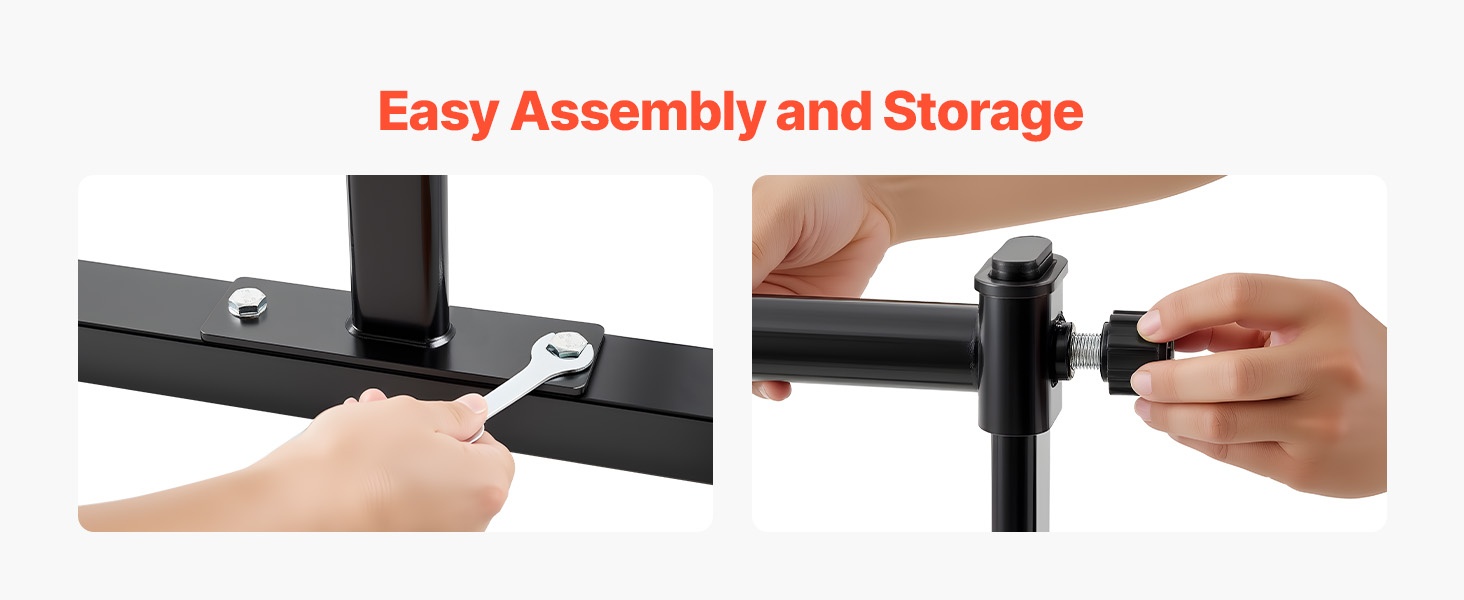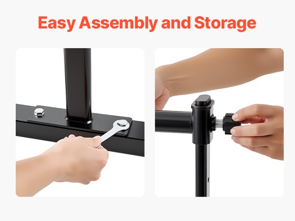 Asennus onnistuu ilman työkaluja: kiinnitä käsituki paikoilleen, kiristä nuppi ja balettitanko on valmiina käyttöön muutamassa sekunnissa. Käännettävä jalkarakenne helpottaa siirtämistä ja säilytystä.