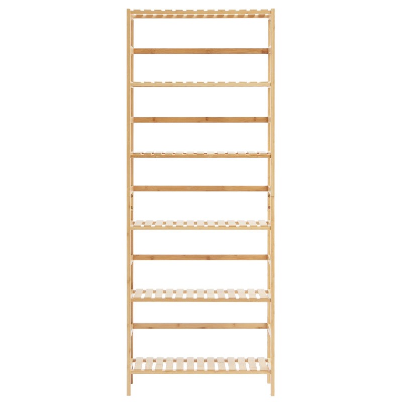 Tämä tikasmallinen puuhylly ei ole vain kirjahylly. Sitä voi käyttää myös kylpyhuonehyllynä pyyhkeille ja kosmetiikalle, kukkatelineenä viherkasveille tai säilytyshyllynä keittiössä ja eteisessä. Neutraali bambun sävy sopii monenlaisiin sisustustyyleihin.